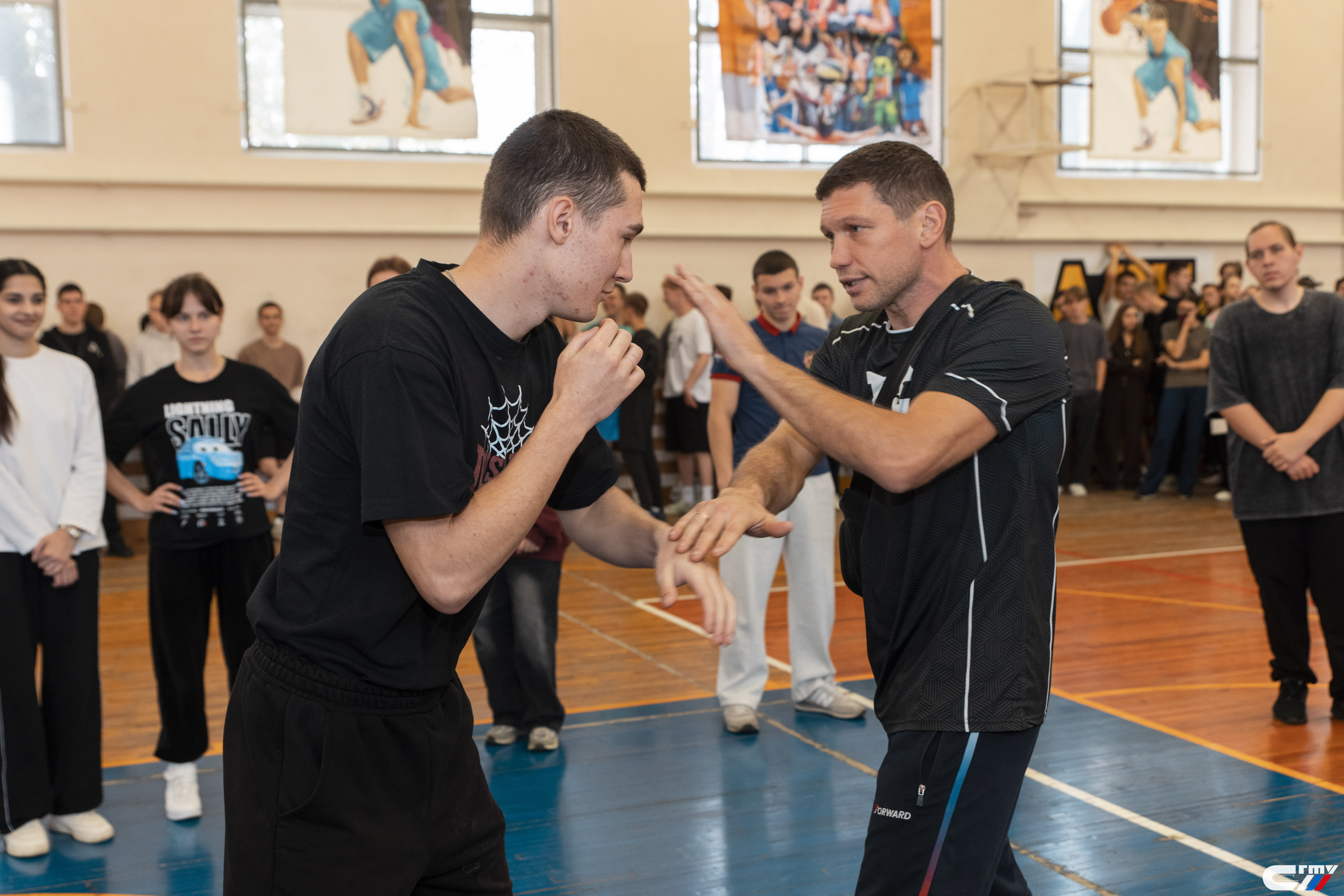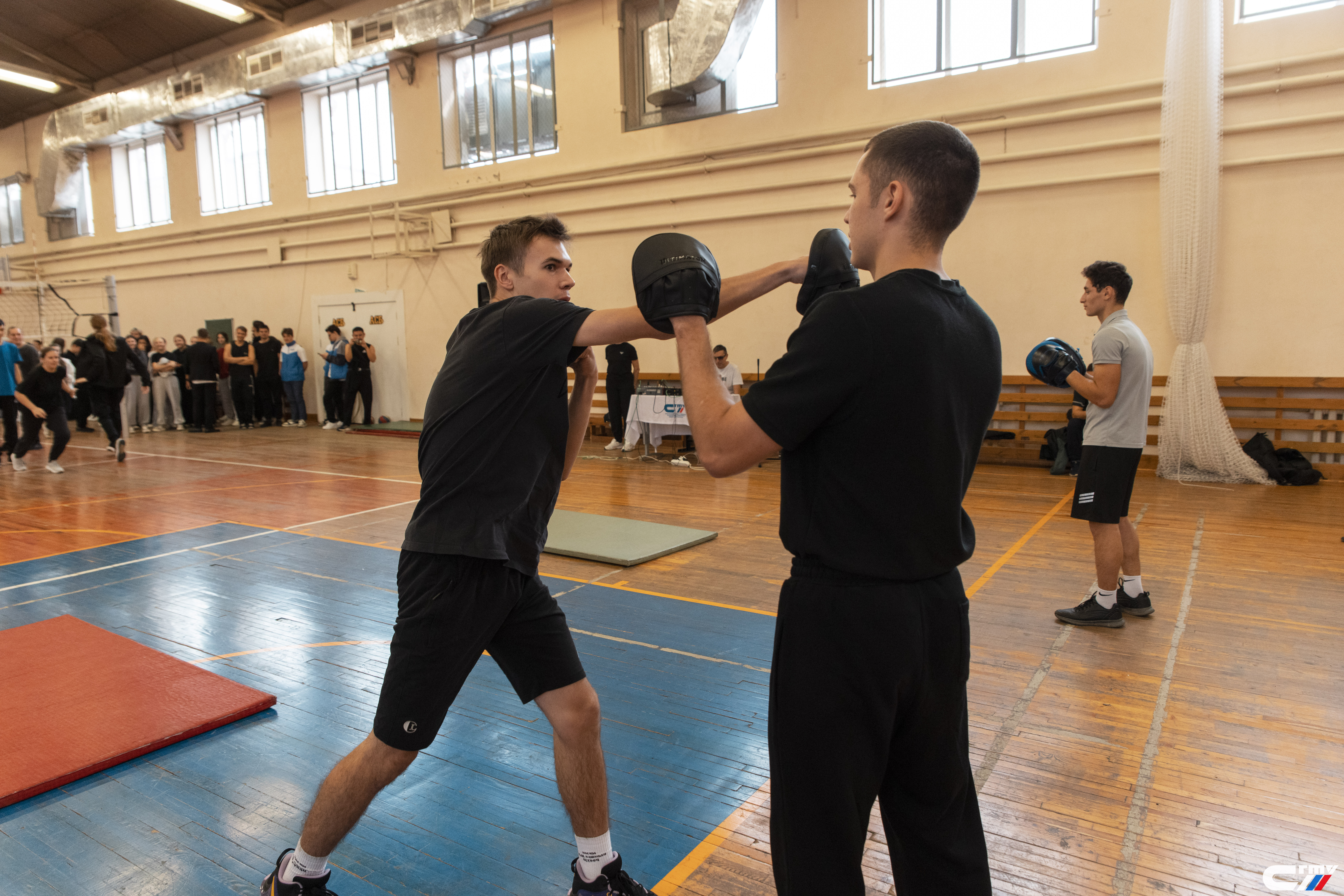 Общаясь со студентами, Александр Стецуренко рассказал о своей спортивной карьере и учебных годах в Политехе. Особое внимание он обратил на важность спортивного и здорового образа жизни. Также Александр провел для ребят мастер-класс по кикбоксингу.