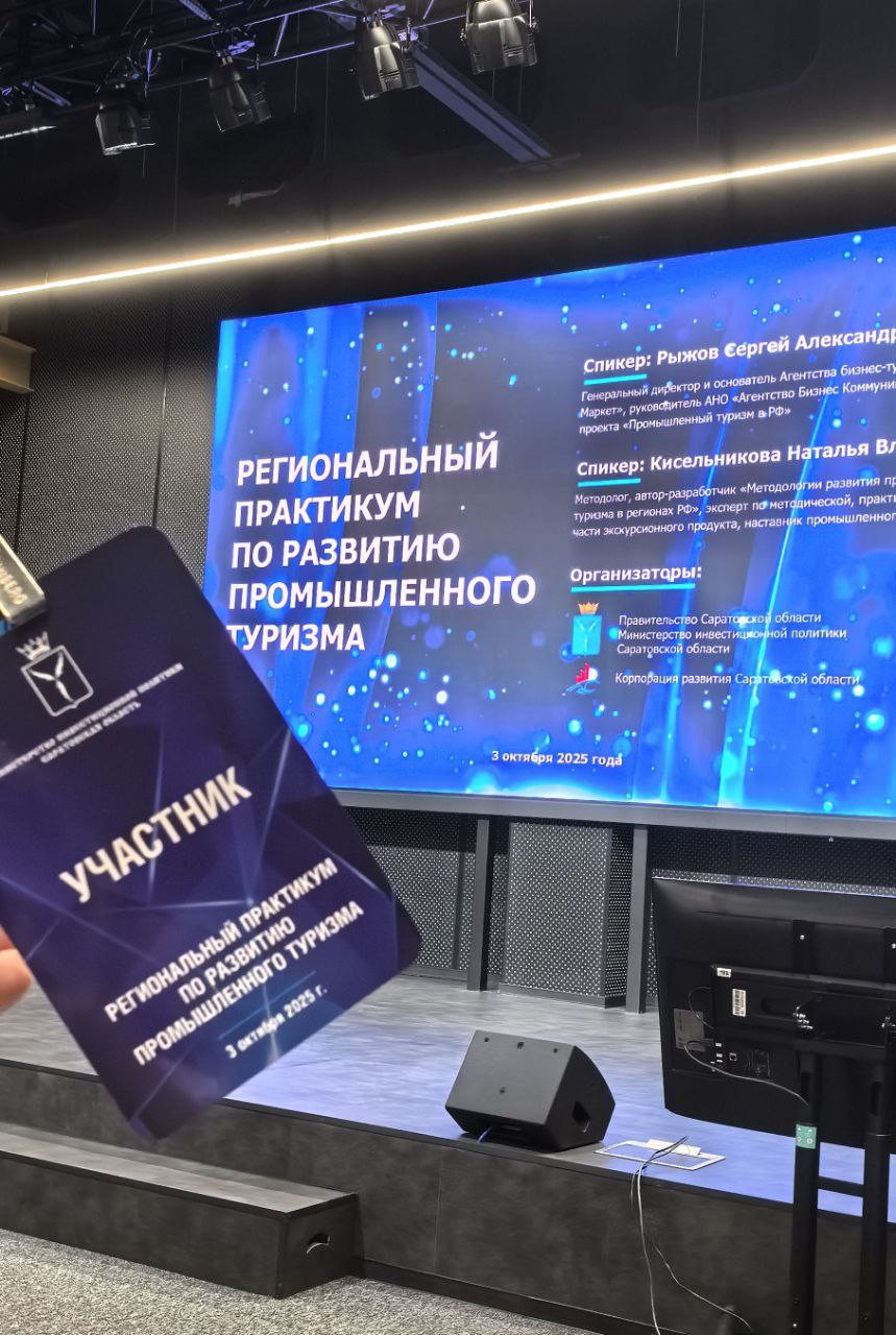 3 октября на площадке технопарка «Саратов Диджитал» состоялся Региональный практикум по развитию промышленного туризма. В практикуме приняли участие представители промышленных предприятий, туроператоры, экскурсоводы, студенты и другие лица, заинтересованные в продвижении промышленного туризма на территории региона. Мероприятие прошло при поддержке Центра карьеры.