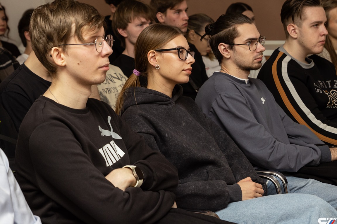 Особый отклик у аудитории вызвал личный опыт ученого: получение государственного жилищного сертификата, создание собственного конструкторского бюро, патенты и разработки, которые сегодня востребованы в реальном секторе экономики. Отдельной темой встречи стал спорт. Студенты признались: сложно найти вид спорта, в котором Сергей Викторович не проявил бы себя. И это не хобби, а системная дисциплина, которая, по его словам, помогает выдерживать высокий инженерный темп.