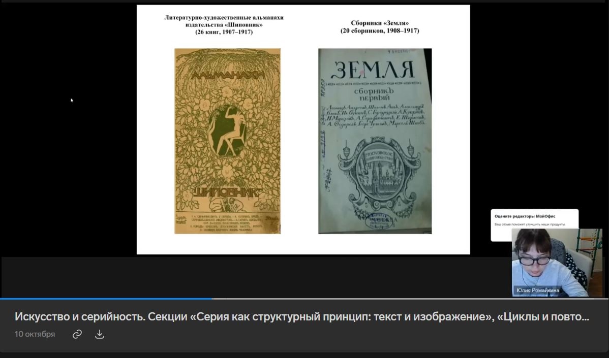 Доцент кафедры «Медиакоммуникации» Института прикладных информационных технологи и коммуникаций Саратовского государственного технического университета имени Гагарина Ю.А. Юлия Ромайкина выступила с докладом на Всероссийской научной конференции «Продолжение следует. Искусство и серийность», которая проходила в Государственном институте искусствознания (г. Москва).