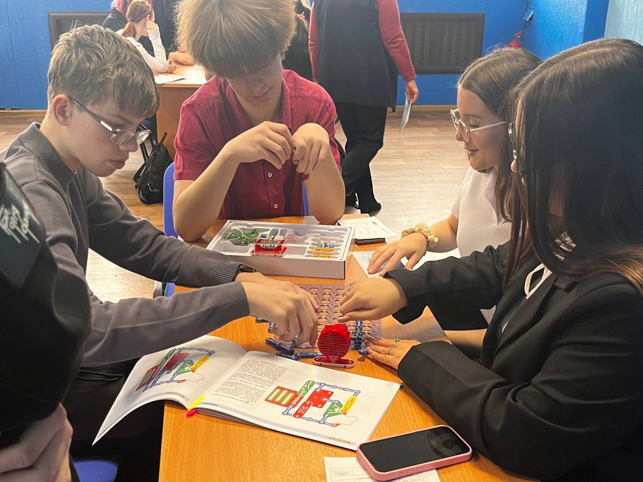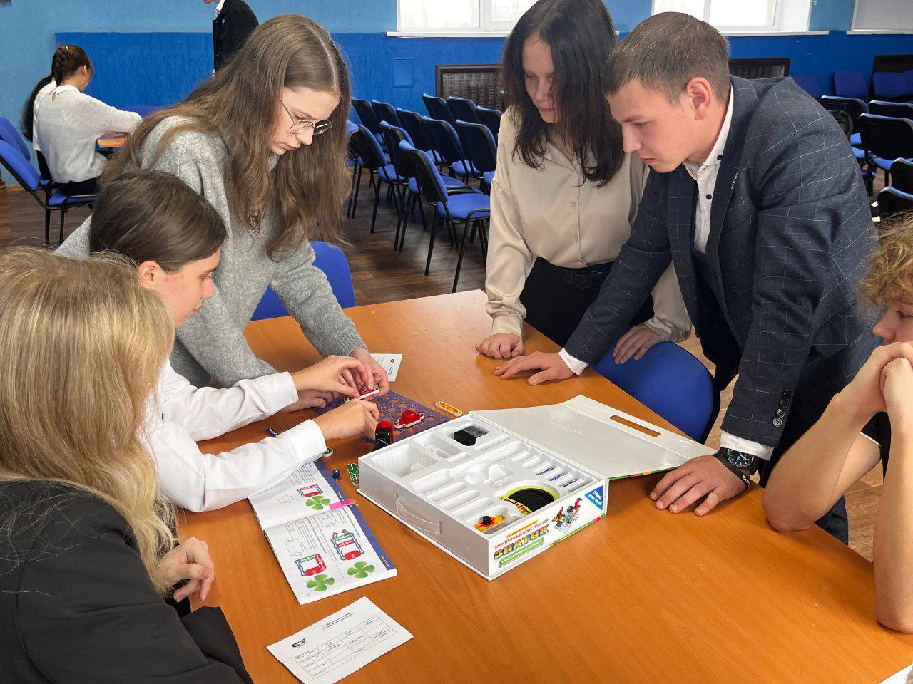 - На площадке «Техник-автоматизатор» под руководством наставника-преподавателя Татьяны Дранченкова и студентов 2 курса специальности «Оснащение средствами автоматизации технологических процессов и производств (по отраслям)» Никиты Земцова, Данила Тихонова, Виктора Зайкина, Анны Склимановой, Ксении Зайцевой и Софьи Докуниной школьники отрабатывали навыки 3D-моделирования, осваивали азы профессионального проектирования в системе «Компас-3D», учились создавать виртуальные модели деталей и понимать, как идея обретает форму на экране компьютера перед тем, как попасть в производство. На специальных конструкторах школьники собирали действующие электрические цепи, изучали, как соединяются элементы, почему загорается лампочка, разбирались в фундаментальных законах электротехники, которые лежат в основе любого автоматического устройства.