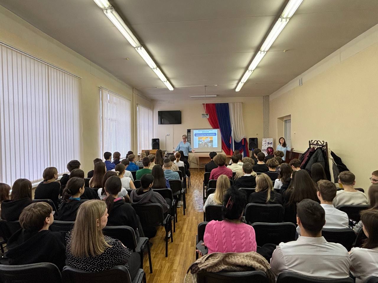 Модератором и ведущей мероприятия выступила Юлия Фанагей, заместитель директора по учебной работе среднего профессионального образования Энгельсского технологического института (филиала) СГТУ имени Гагарина Ю.А., в сопровождении тьютора – Даниила Левицкого, студента 3 курса специальности «Монтаж, техническое обслуживание, эксплуатация и ремонт промышленного оборудования (по отраслям)». Спикеры рассказали ребятам, как пробовать профессии на практике и какие возможности для личностного развития предоставляют школьникам Саратовский государственный технический университет и ЭТИ.