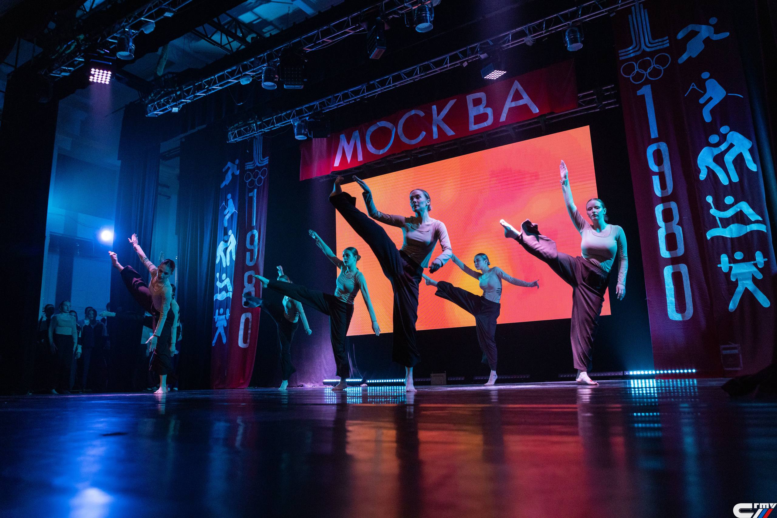 Для своего номера студенты Института УРБАС выбрали тему «Олимпиада-80». В акробатических номерах, в танце и пластике была рассказана история юноши, который идет к своей мечте и завоевывает медаль, а поддержка верных товарищей помогает ему достичь вершин.