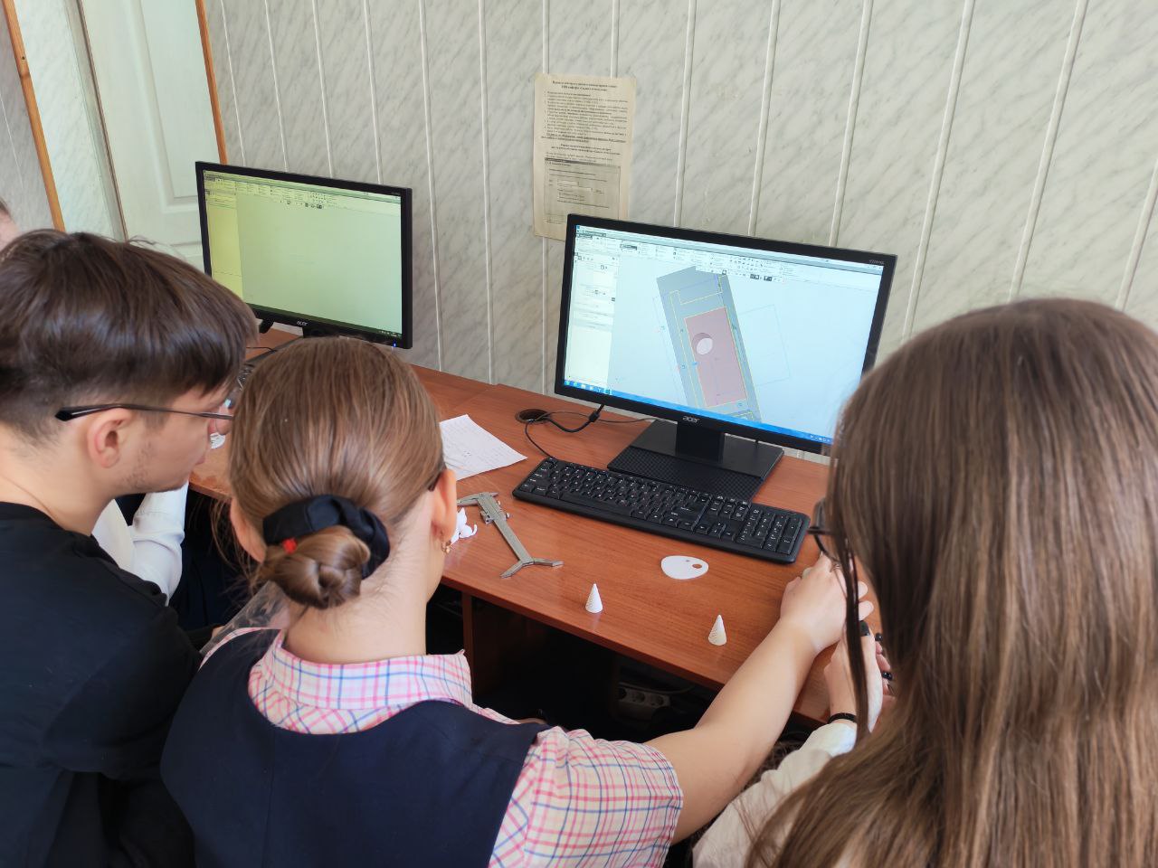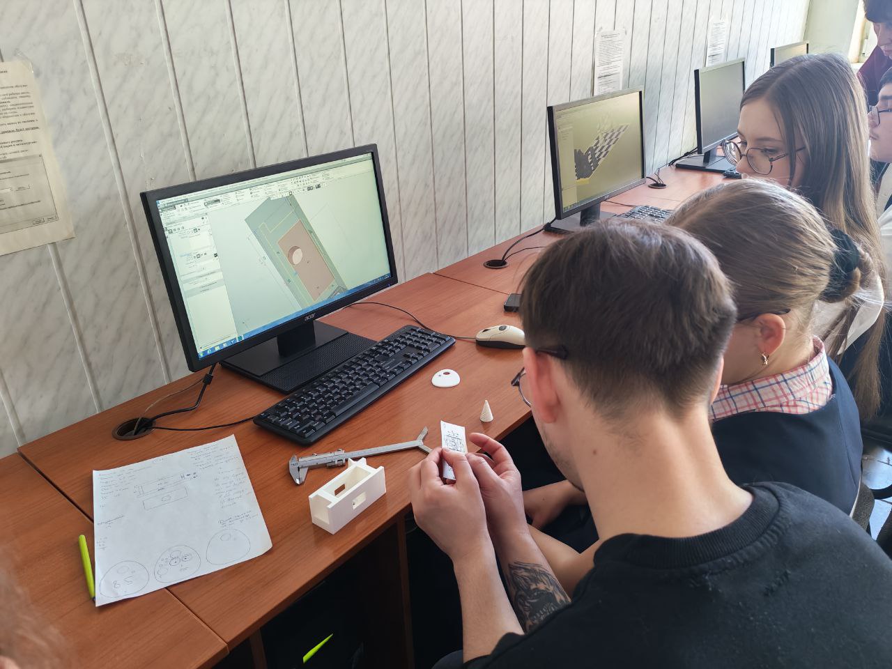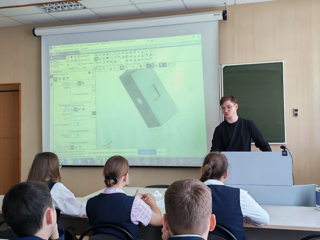 Школьники познакомились с современными подходами к созданию трёхмерных моделей для различных производств, узнали о роли 3D-моделирования в жизненном цикле изделия на современных цифровых производствах в машиностроении, познакомились с работами студентов и выпускников кафедры.