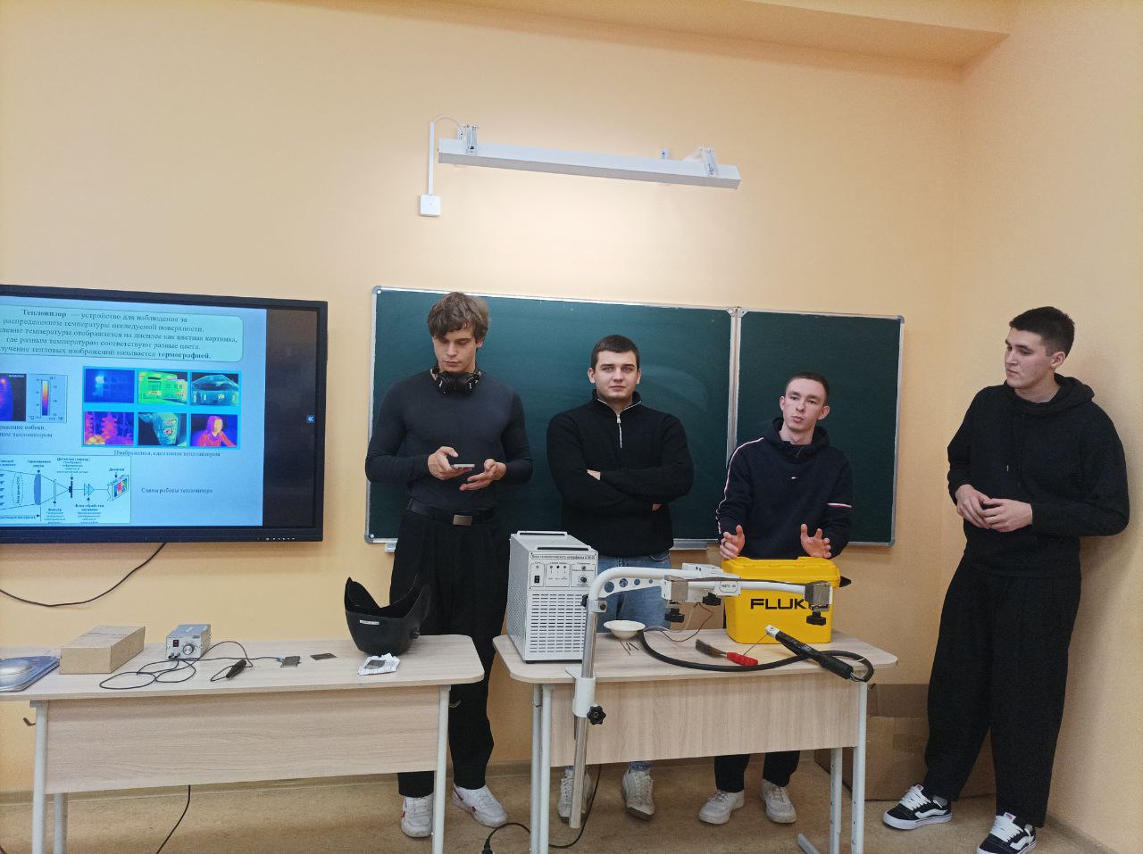 Студенты 2 и 3 курса направлений «Лазерная техника и лазерные технологии» и «Машиностроение» Данила Скороходов, Дарья Петрова, Ростом Гарцкия, Никита Кузнецов, Евгений Казуров и Матвей Воробьёв познакомили ребят с физическим явлением кавитации, с процессом выделения теплоты при соединении металлов точечной контактной сваркой, с методом изучения тепловых изображений и с принципами проведения электроискровой обработки материалов. Старшеклассники узнали о процессе возникновения дуги между металлическим электродом и металлом, о видах электродуговой сварки и о ее применении в машиностроительной промышленности.