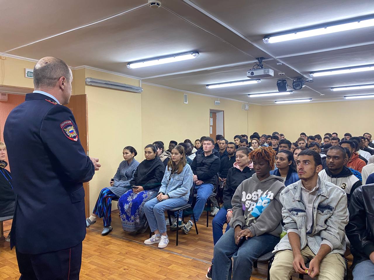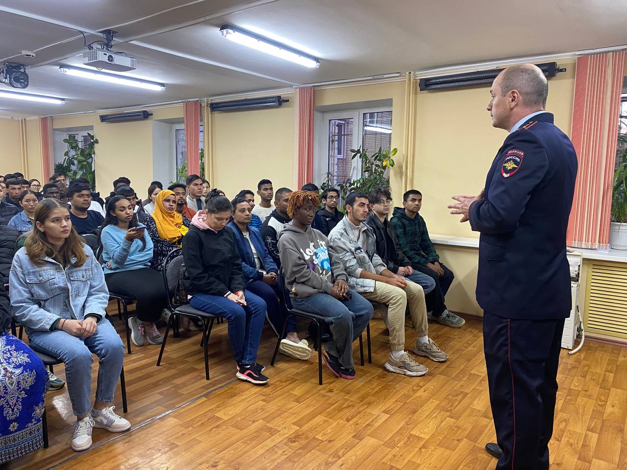 Спикером выступил старший оперуполномоченный УНК ГУ МВД России по Саратовской области, капитан полиции Александр Куницын. В мероприятии приняли участие более 80 иностранных студентов Политеха.