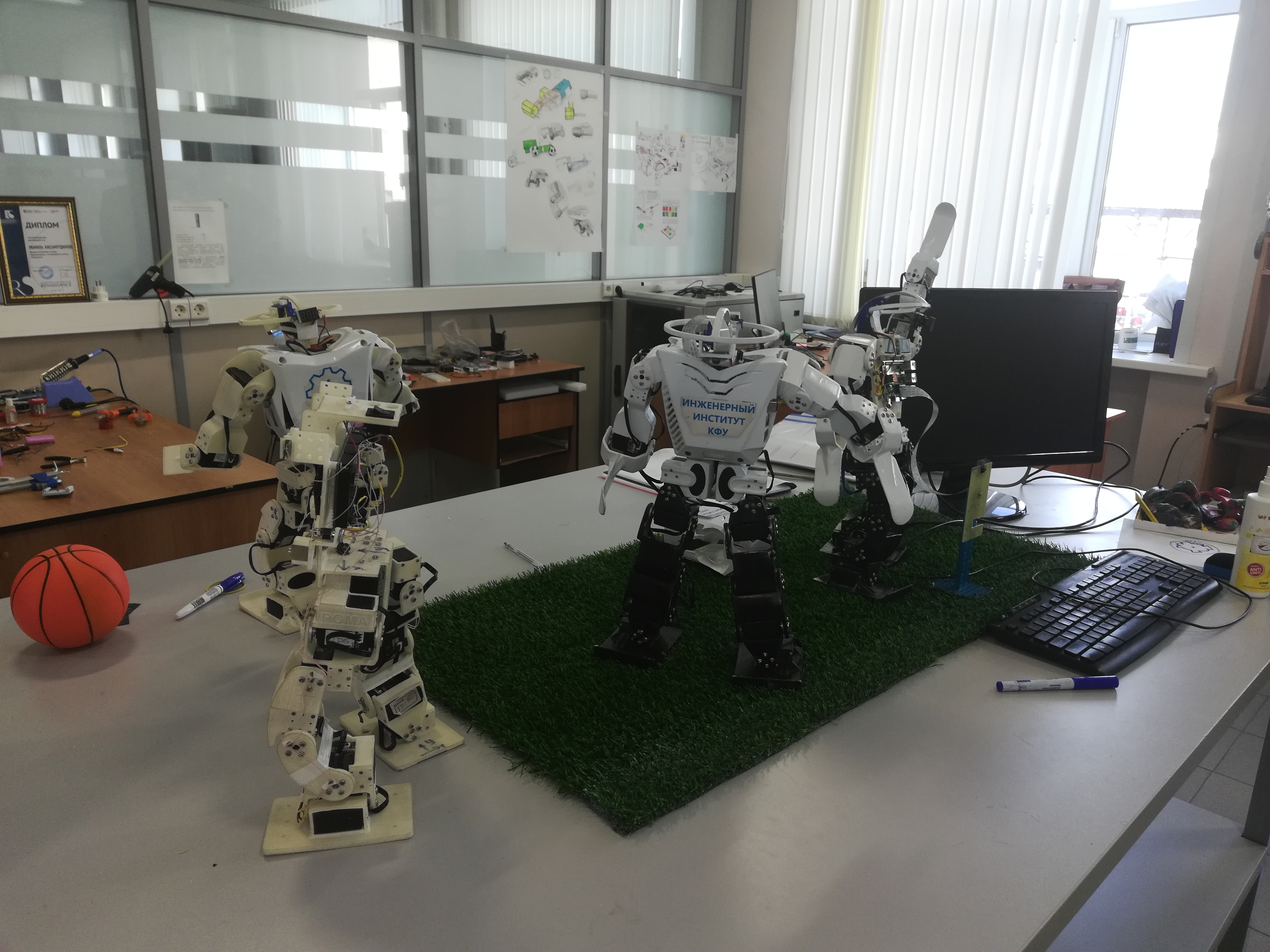 Доцентами Папковой И.В. и Салтыковой О.А. были сделаны доклады на расширенном заседании диссертационного совета по присвоению ученых степеней в области физико-математических наук, вызвавшие большой интерес слушателей. Проректор по инженерному образованию КФУ, д.т.н., профессор, член-корреспондент АН РТ Кашапов Н.Ф. пригласил посетить возглавляемый им Инженерный институт КФУ, созданный в 2013 году. Основными научными направлениями института являются разработка робототехнических систем в медицине, материаловедении и 3D прототипирование. В частности, создание андроидных роботов, осуществляющих различные виды деятельности, например, роботов-футболистов или баскетболистов. Институт оснащен несколькими видами 3D-принтеров, работающих на базе различных технологий печати, таких как лазерная стереолитографии (SLA технология), технология селективного лазерного спекания (SLS технология), метод наплавления (MJM) и послойной укладки полимера (FDM).