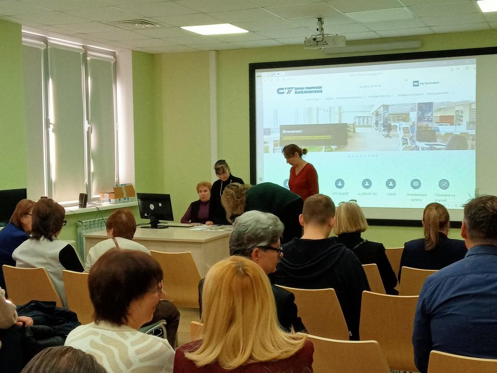 В рамках мероприятия сотрудники библиотеки представили обзор сайта НТБ, осветив следующие темы: российские и зарубежные научные образовательные интернет-ресурсы, работа с антиплагиатом, редактирование профиля авторов в РИНЦ.
