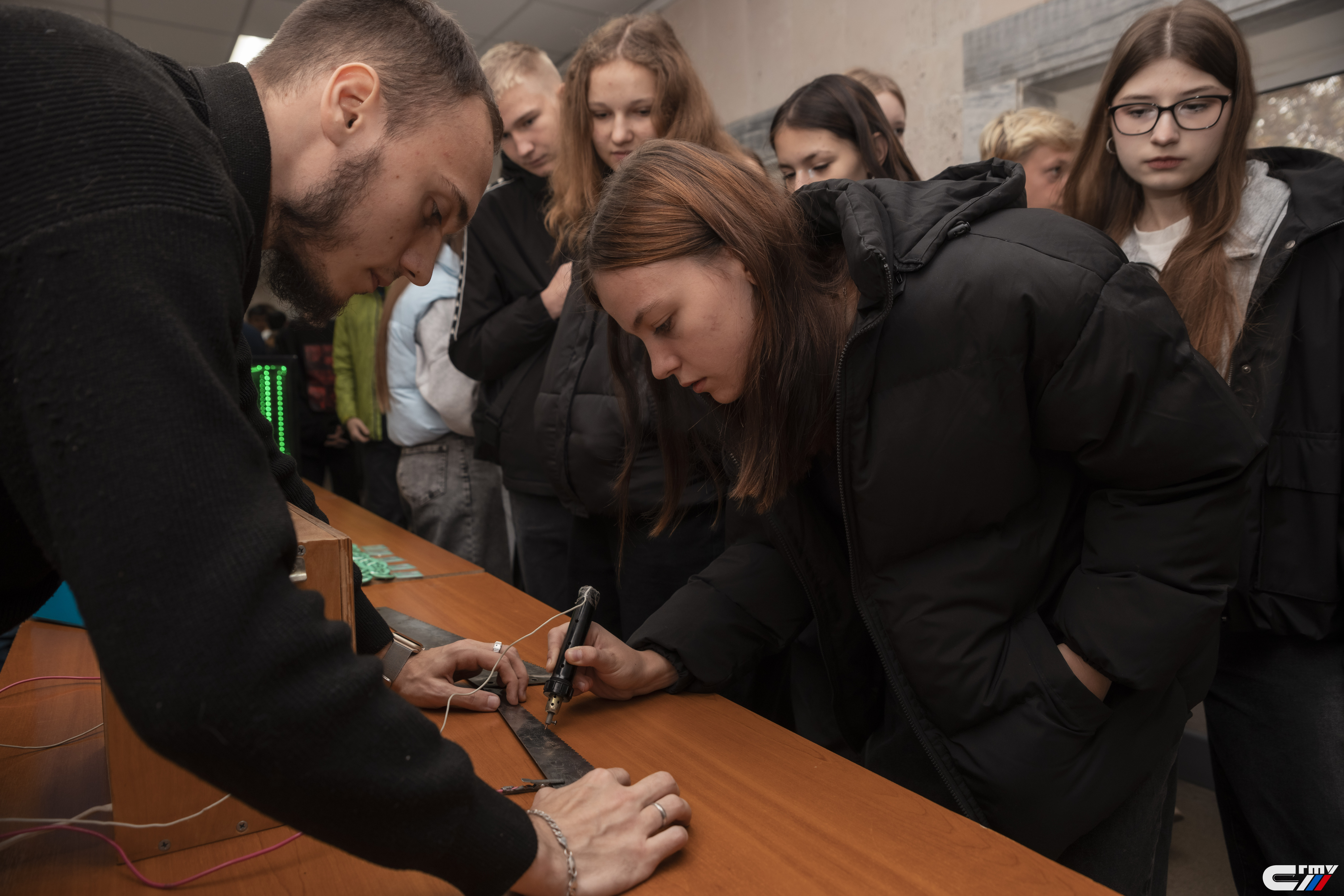 Институт электронной техники и приборостроения провёл мастер-класс по сборке простых электронных схем, показал радиотехнические модели, роботов-исследователей, опыты и эксперименты с катушкой Тесла. А кроме того, учащиеся на площадке института смогли попробовать себя в роли настоящих операторов дронов и выполнить тренировочные полеты и элементы.