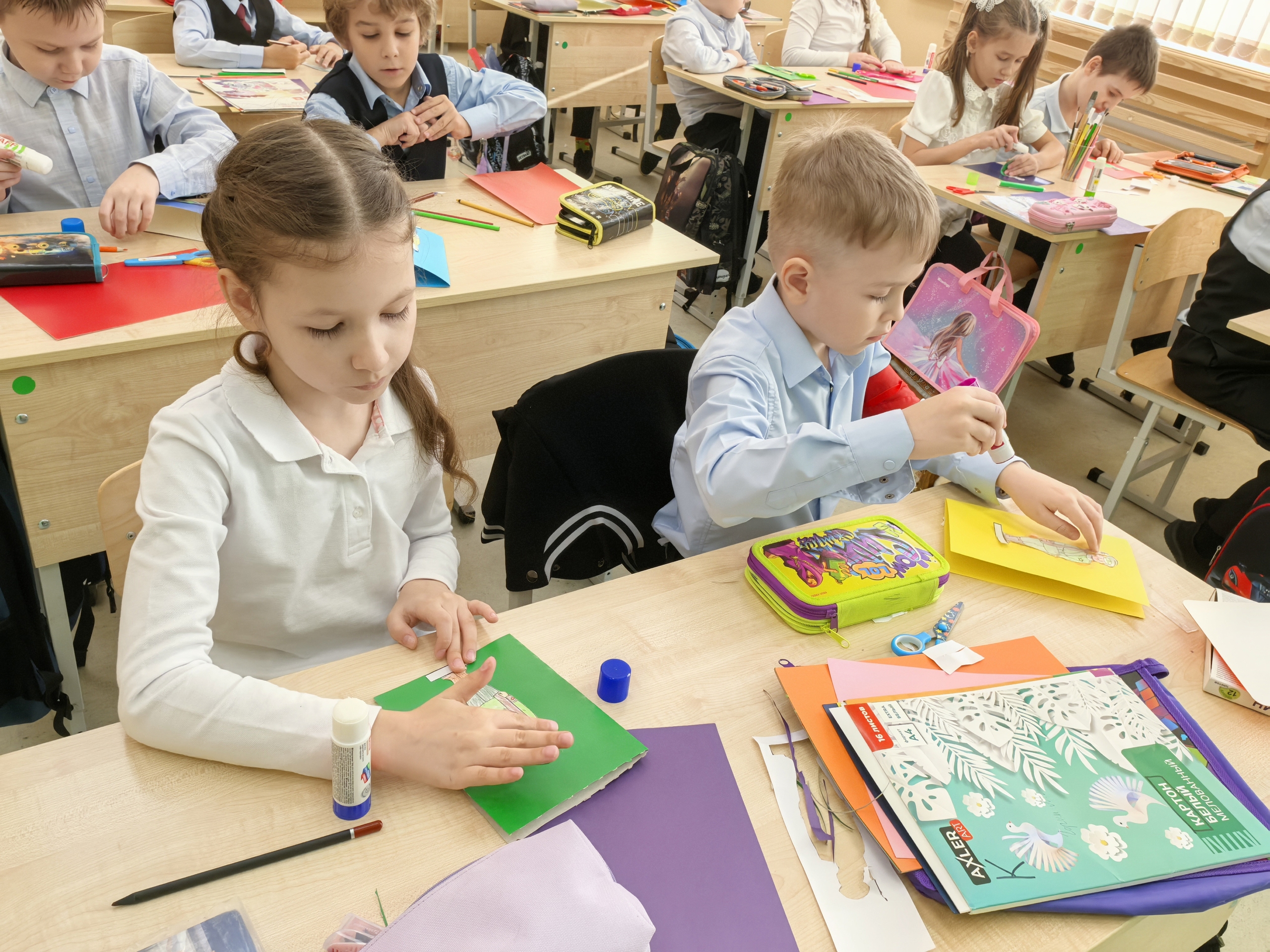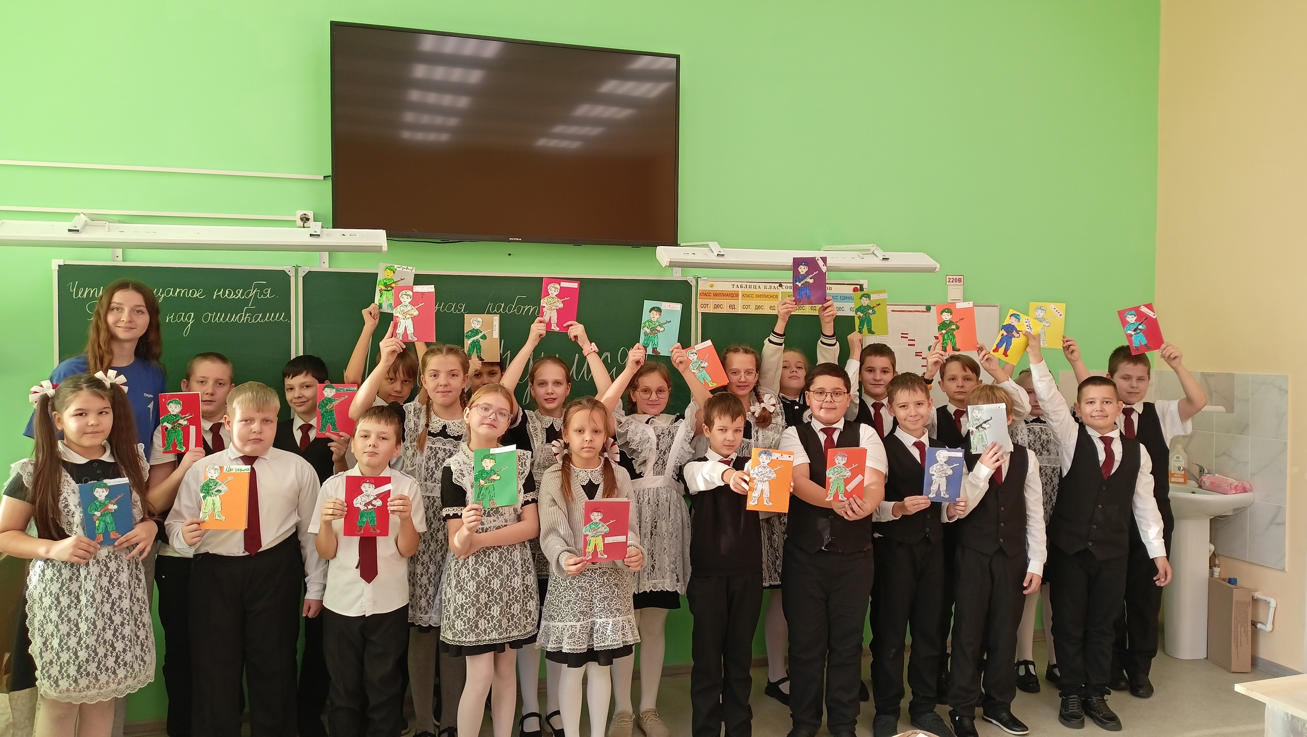 Команда Движения Первых - председатель первичного отделения СГТУ Ольга Веригина, заместитель Андрей Шлыков и куратор Глеб Нерозя - выезжает в средние общеобразовательные школы, где вместе с учениками создает памятные открытки и письма со словами благодарности и поддержки для бойцов СВО.