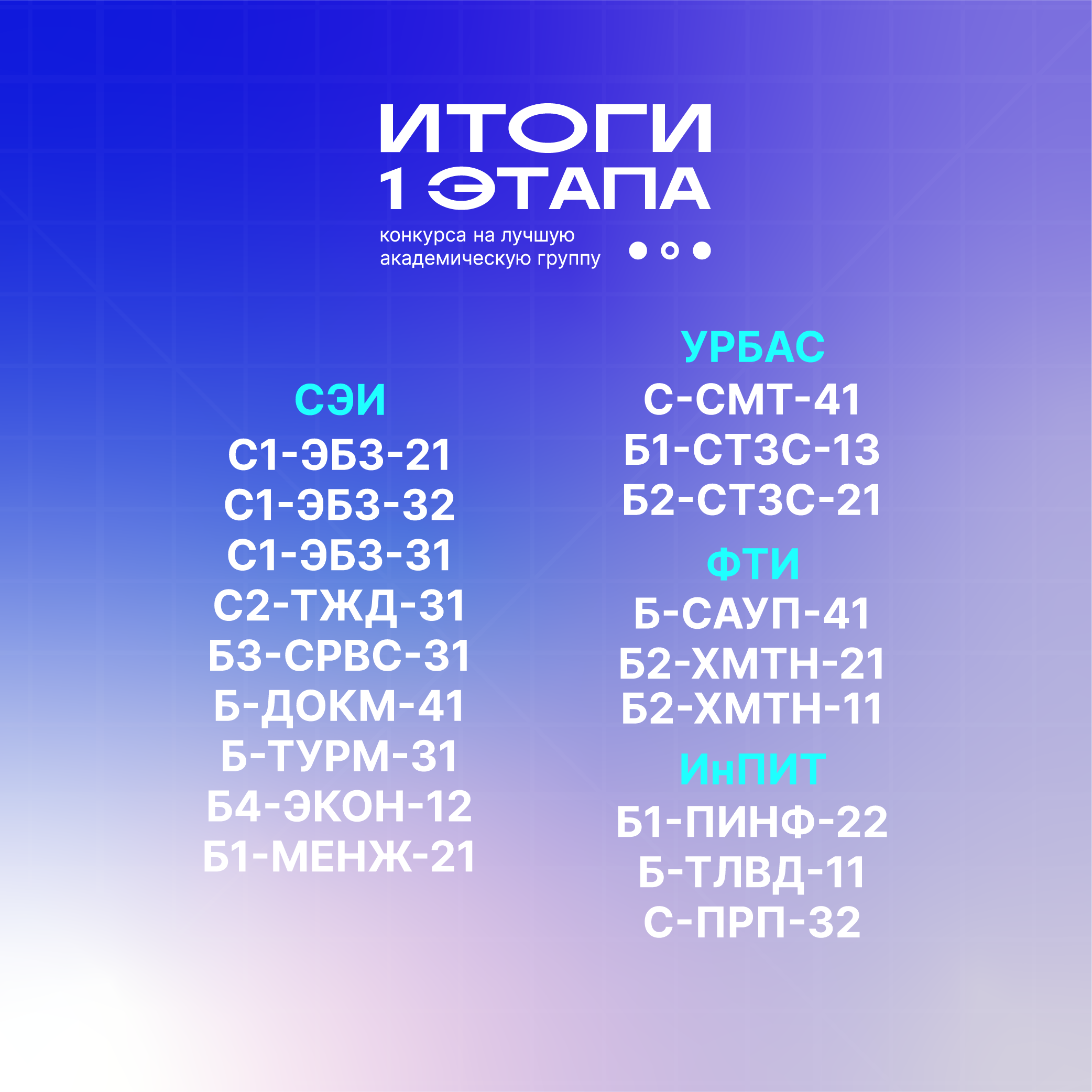 Сегодня Объединенный совет обучающихся СГТУ объявил список академических групп, прошедших в финал. Со списком можно ознакомиться в карточках.