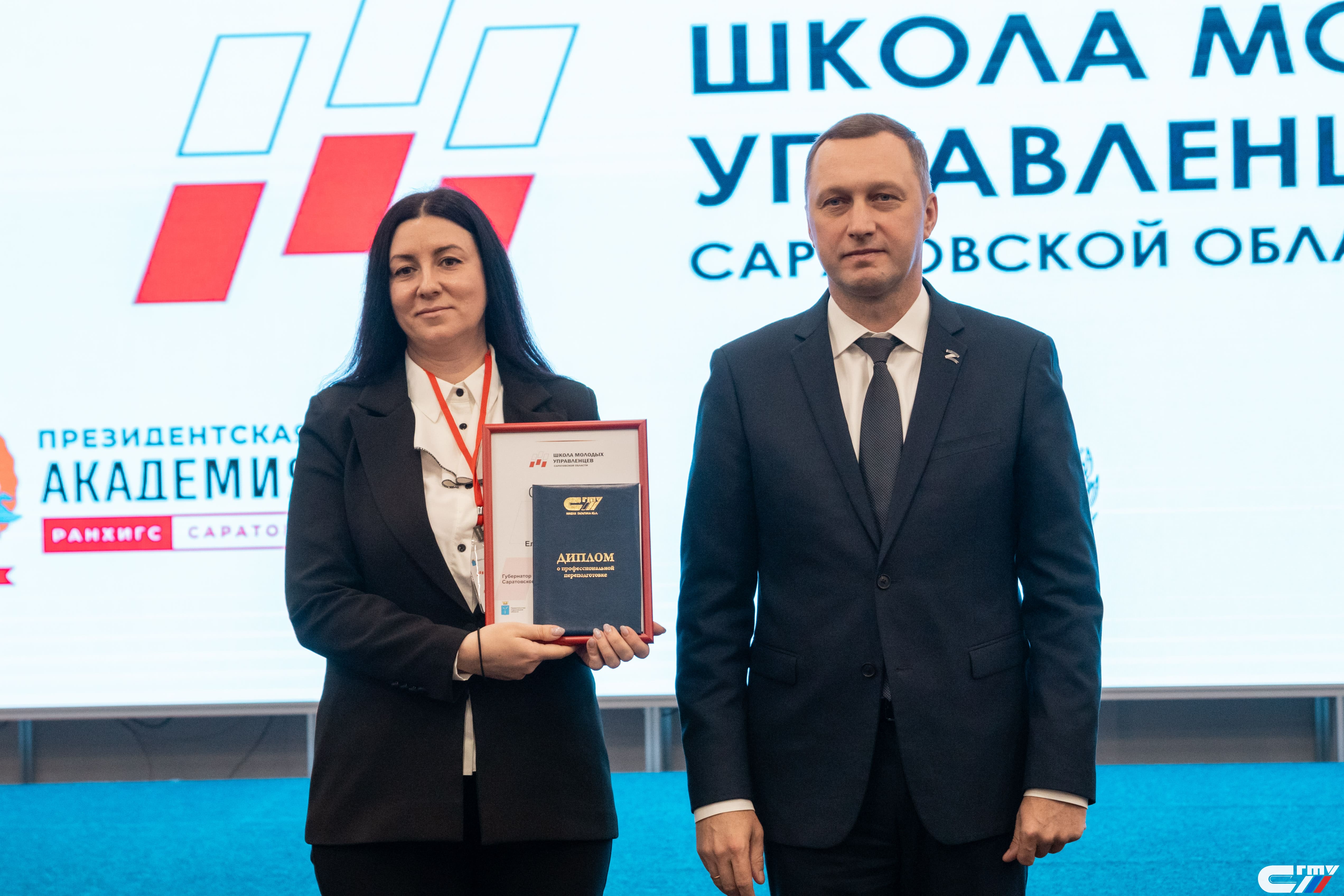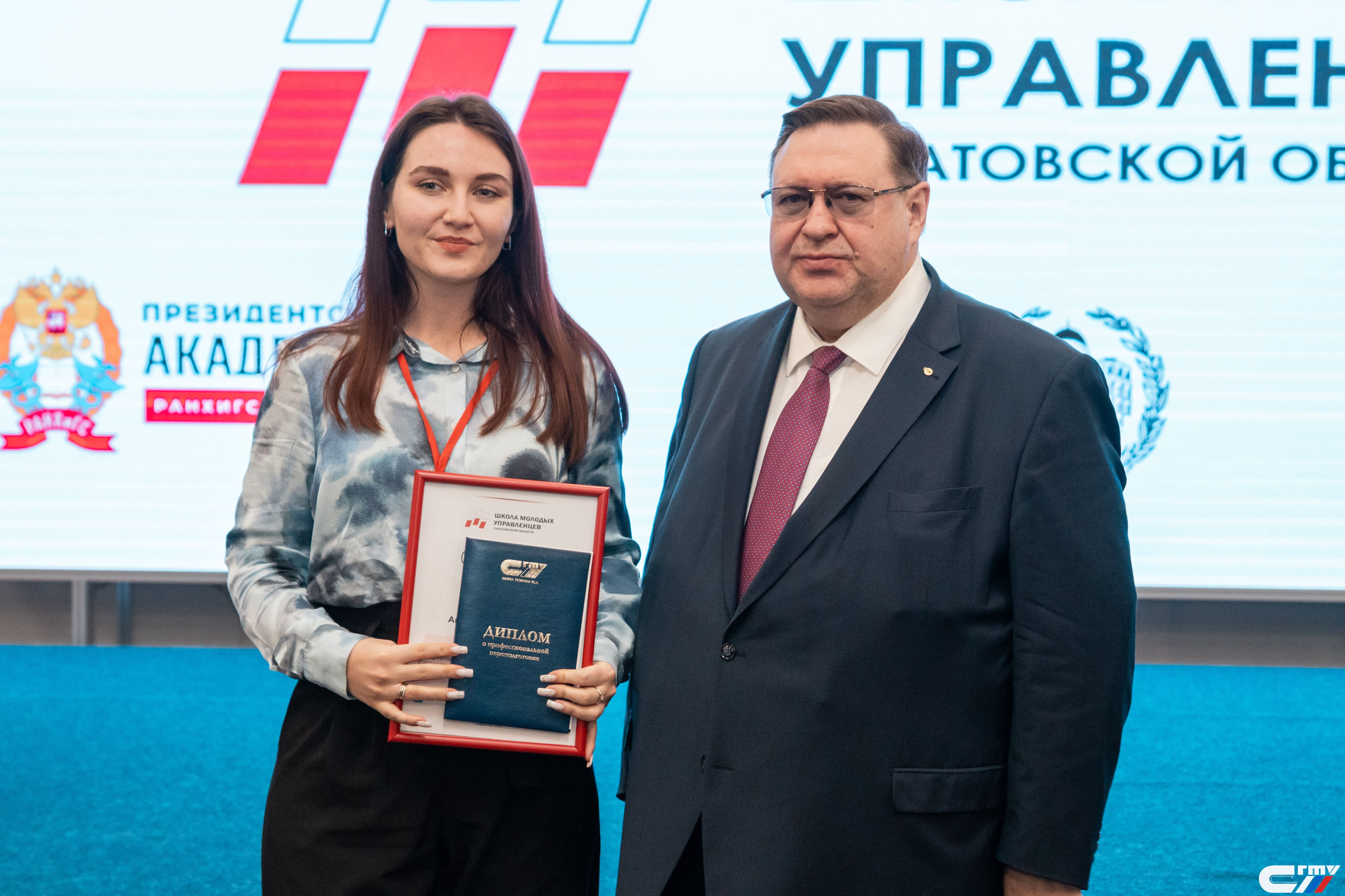 Дипломы о профессиональной переподготовке выпускникам школы вручили Губернатор области Роман Бусаргин, ректор СГТУ имени Гагарина Ю.А., профессор Сергей Наумов, ректор СГУ имени Н. Г. Чернышевского Алексей Чумаченко и директор Поволжского института управления имени П.А. Столыпина – филиала РАНХиГС при Президенте РФ Виктор Чепляев.