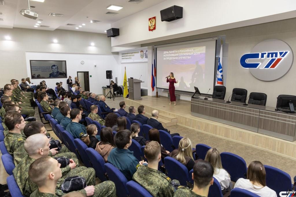 В Саратовском государственном техническом университете имени Гагарина Ю.А. прошло патриотическое мероприятие, приуроченное ко Дню памяти россиян, исполнявших служебный долг за пределами Отечества. Его организатором выступило реготделение Российского военно-исторического общества.