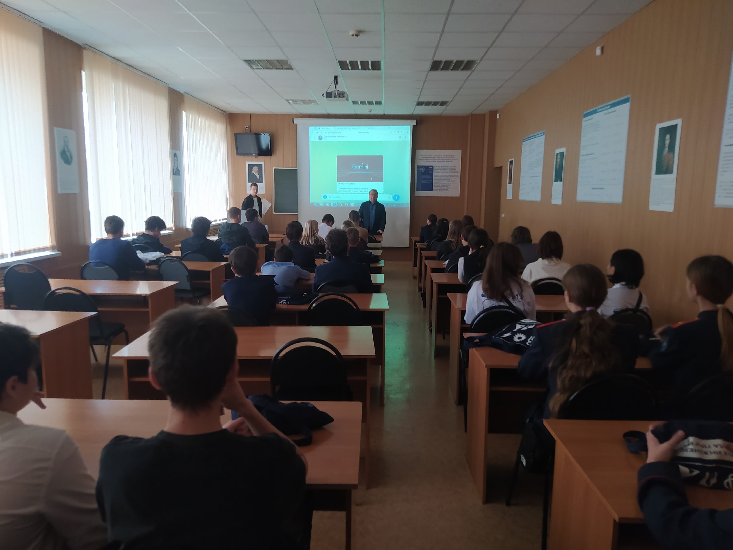 Профессор Максим Жигалов рассказал школьникам о научных исследованиях кафедры «Математика и моделирование» в области механики, медицины и истории, которые проводятся с помощью искусственного интеллекта, а студент четвертого курса Семен Великанов рассказал об использовании нейронных сетей в процессе обучения и познания окружающего мира.