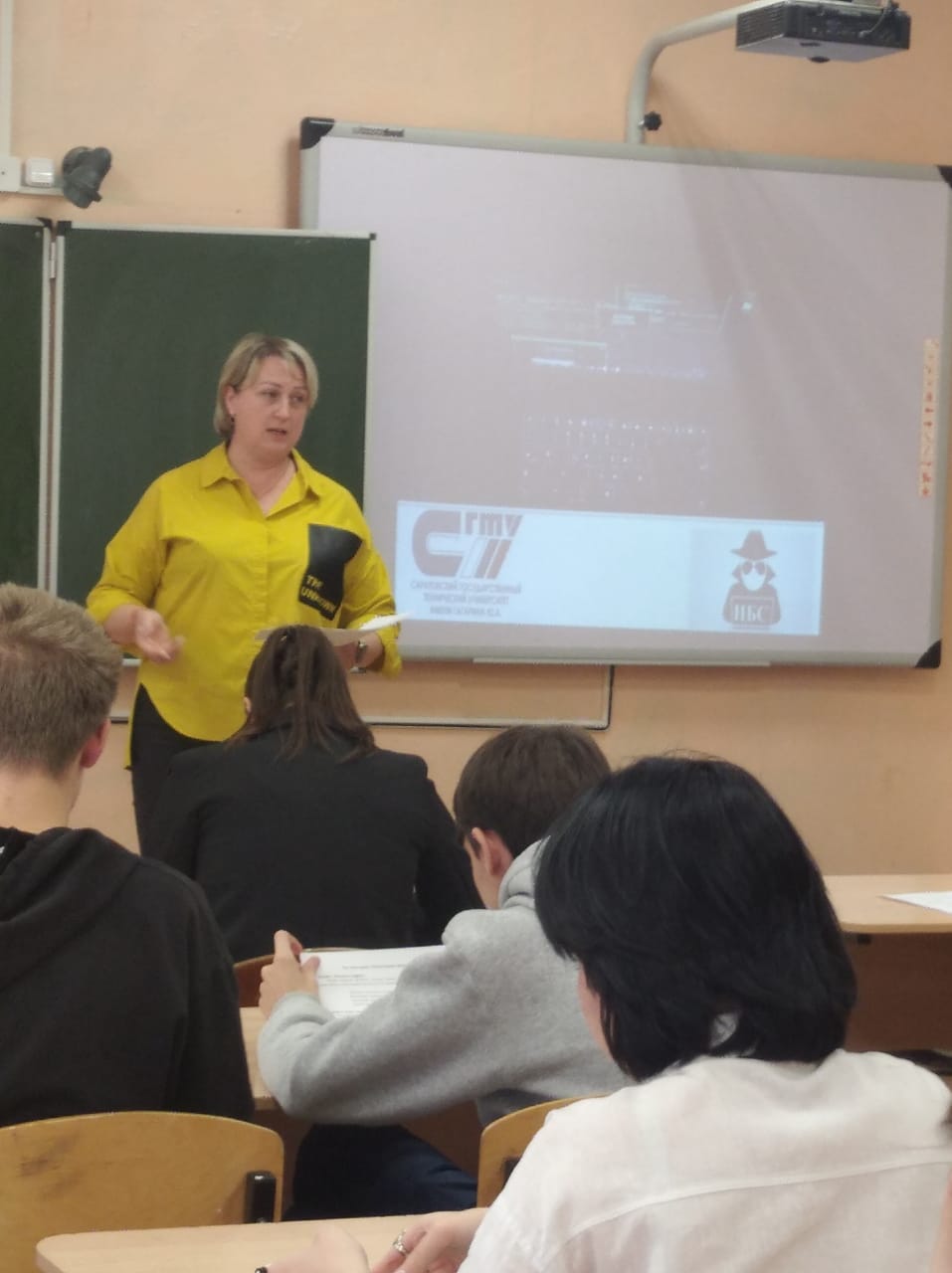 Старшеклассники 10 класса занимались проектной деятельностью вместе с Юлией Фанагей, заместителем директора по учебной работе среднего профессионального образования Энгельсского технологического института (филиала) СГТУ. В ходе урока разбирались, как придумывать прорывные идеи проектов. Школьники выполняли практические упражнения по формированию проектных компетенций и развитию креативности, разгадывали логические загадки и головоломки.