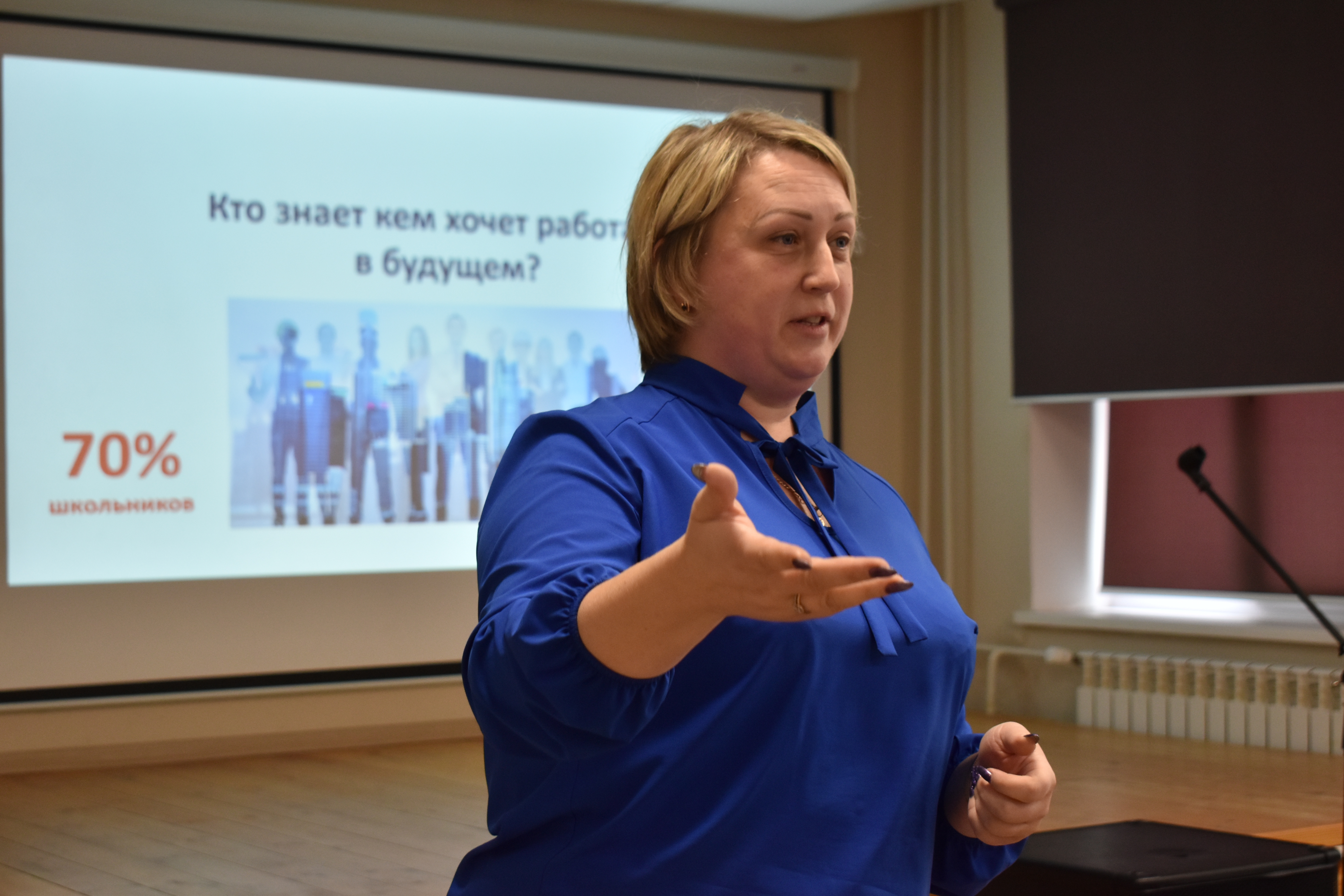 Открыла мероприятие и выступила модератором заместитель начальника управления профориентации и приема Юлия Фанагей. Она рассказала ребятам, что такое профессиональные пробы и зачем они нужны, как не ошибиться в профессиональном выборе, чтобы успешно построить свою образовательную траекторию. На «Карьерном подиуме», в заключительной части программы, порассуждали о том, является ли профессия составляющей счастья человека.
