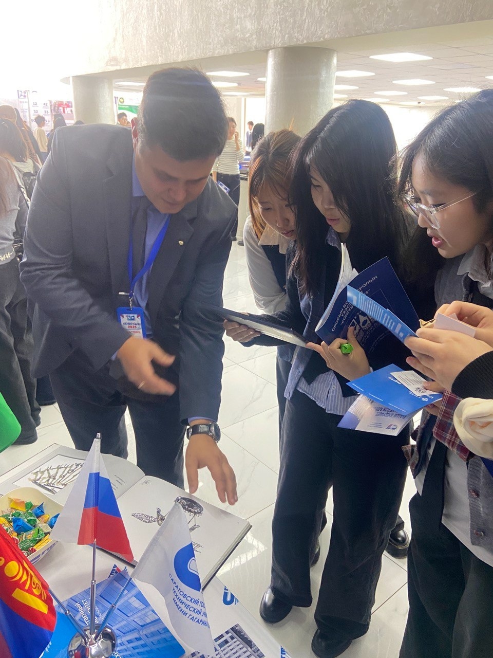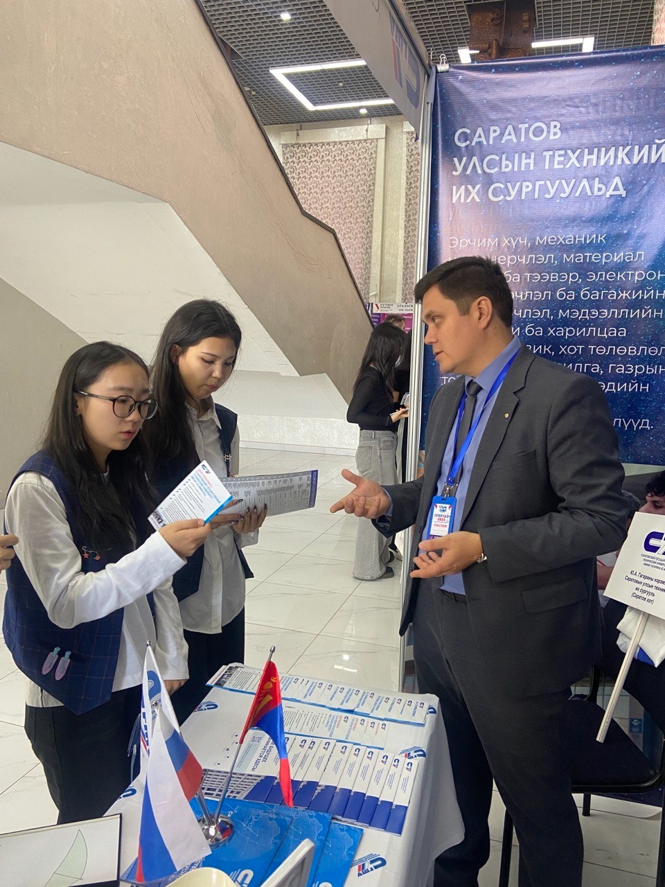 Второй год подряд директор Института энергетики Никита Озеров и заместитель начальника Управления международных коммуникаций Илья Терентьев представляли на выставке образовательный и научный потенциал Саратовского государственного технического университета имени Гагарина Ю.А. В 2025 году она проходила в рамках 65-х Дней российско-монгольской дружбы и сотрудничества и была приурочена к 100-летию народной дипломатии.