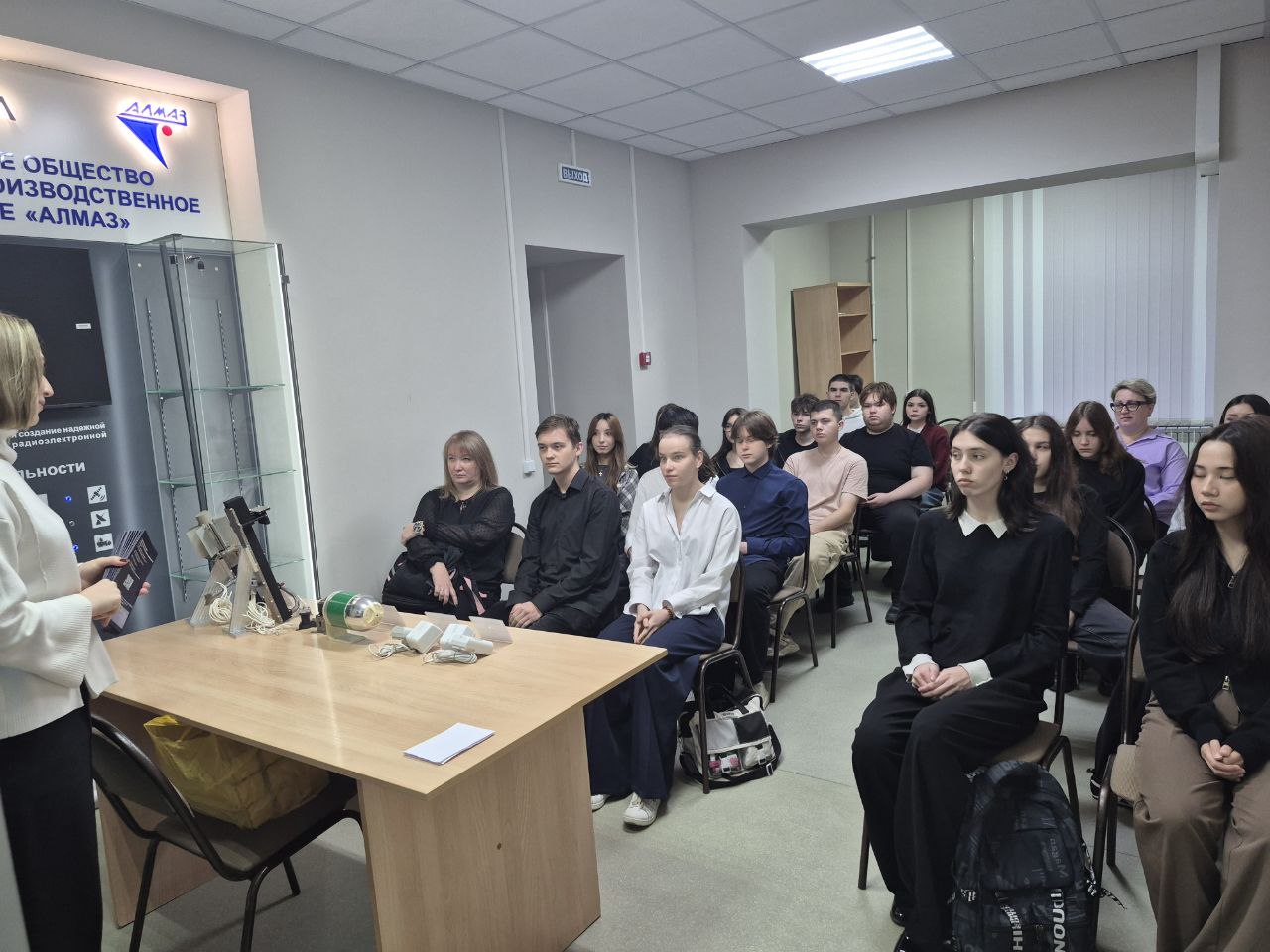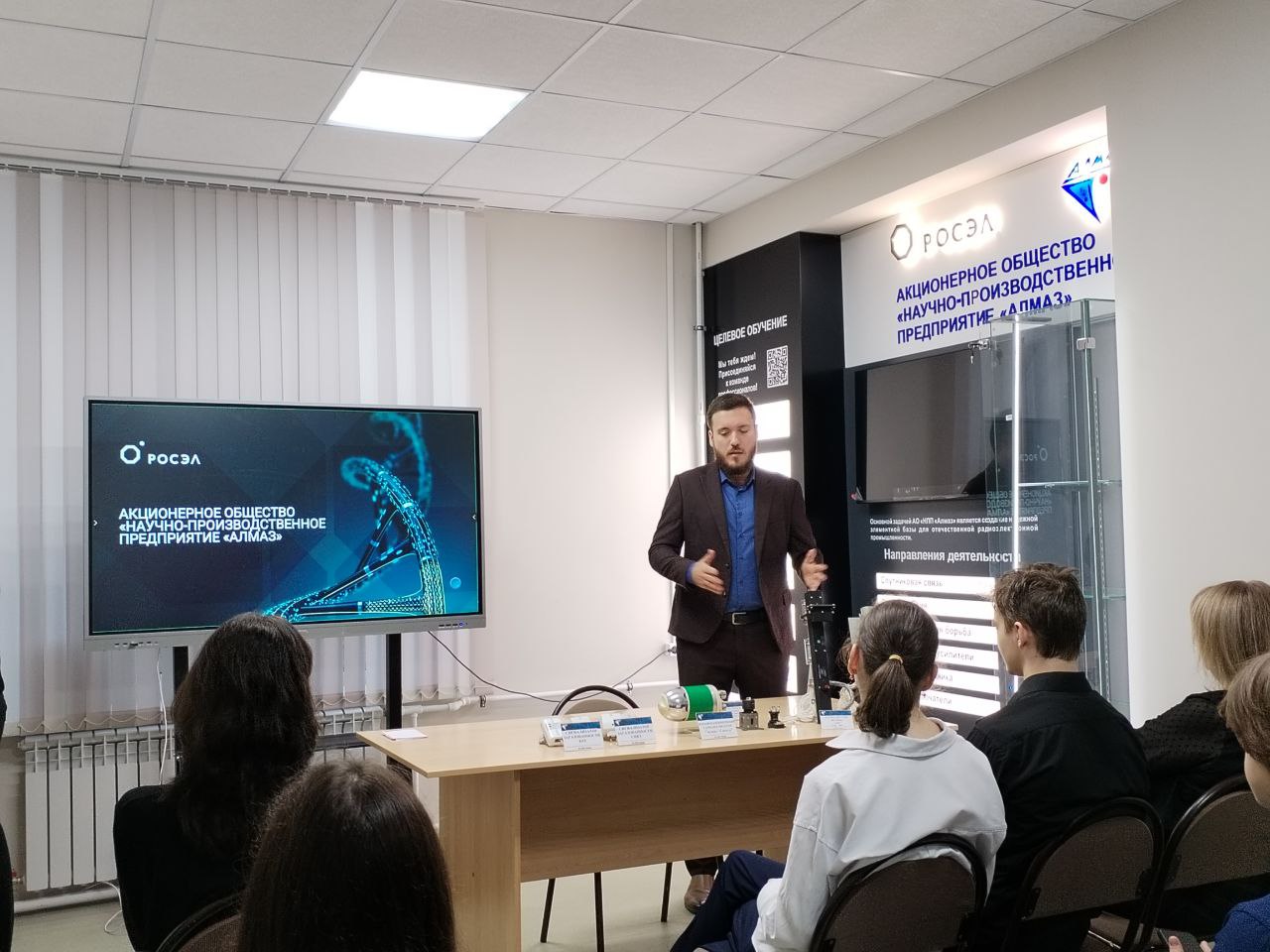 В рамках курса «Профессиональное самоопределение» для учеников 10 и 11 классов прошел производственный урок, который провели представители одного из ведущих предприятий страны – Научно-производственного предприятия «Алмаз». Эта встреча стала для ребят уникальной возможностью заглянуть в мир высоких технологий и узнать о перспективах работы в оборонно-промышленном комплексе России. Школьники узнали о том, как устроено современное наукоемкое предприятие, и познакомились с основами радиолокации – технологии, без которой сегодня немыслимы авиация, космонавтика и системы безопасности. Особый интерес у будущих выпускников вызвала информация о целевом обучении. Ребята узнали о существенных преимуществах такого пути: четкий план карьеры, социальные гарантии, включая повышенную стипендию, и гарантированное трудоустройство по итогам успешного обучения. Специалисты также дали конкретные рекомендации, куда поступать, чтобы в будущем стать частью коллектива, и перечислили самые перспективные вакансии для молодых специалистов. Встреча не ограничилась лекцией, во время викторины по физике ребята смогли блеснуть эрудицией и получить сувениры от предприятия. В завершение урока участникам показали видеоролик о деятельности НПП «Алмаз», который наглядно продемонстрировал масштаб и значимость работы предприятия для страны.