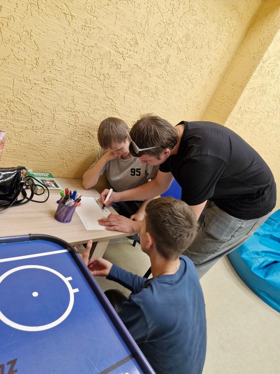 Студенты Политеха Усман Умаров, Богдан Шайхутдинов (Институт прикладных информационных технологий и коммуникаций) и Владимир Лигус (Институт урбанистики, строительства и архитектуры) вместе с руководителем Центра социальной интеграции и содействия укреплению здоровья обучающихся Светланой Гарусиной провели очередную встречу с подростками, находящимися на обслуживании в подростковом клубе АНО «Всегда рядом».