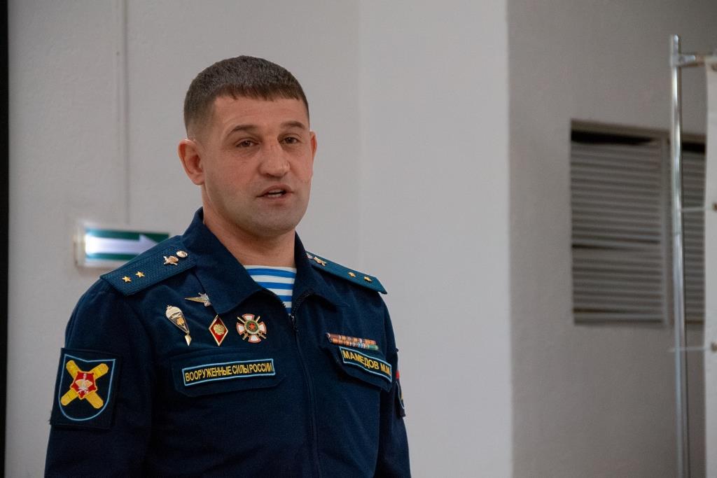 Магамед рассказал о своей службе в зоне специальной военной операции, поделился с участниками встречи опытом, как приходилось проявлять смелость и отвагу, выполняя боевые задачи вместе с товарищами на передовой. Также он рассказал о быте на линии фронта и о том, как вместе с другими солдатами проходил нелегкий путь с самого начала операции.