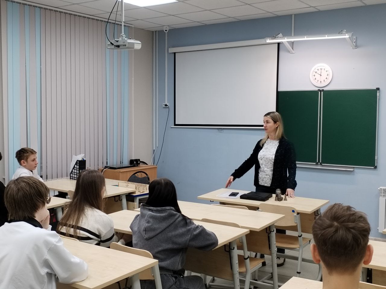 На уроке «Шаг в профессию» перед девятиклассниками с презентацией специальности «Управление качеством продукции, процессов и услуг (по отраслям)» выступила Елена Карпеева, преподаватель Профессионально-педагогического колледжа. Она рассказала, что контроль качества – это увлекательный процесс, а специалисты по качеству ищут причины проблем, предотвращают ошибки и выстраивают процессы так, чтобы всё работало как часы. Спикер объяснила, что такое стандарты, почему важно каждое действие и как даже маленькое улучшение может привести к большому успеху компании. Школьники с удивлением обнаружили, что принципы качества они уже применяют в жизни: собирая сложный проект или тренируясь для лучшего результата в спорте.