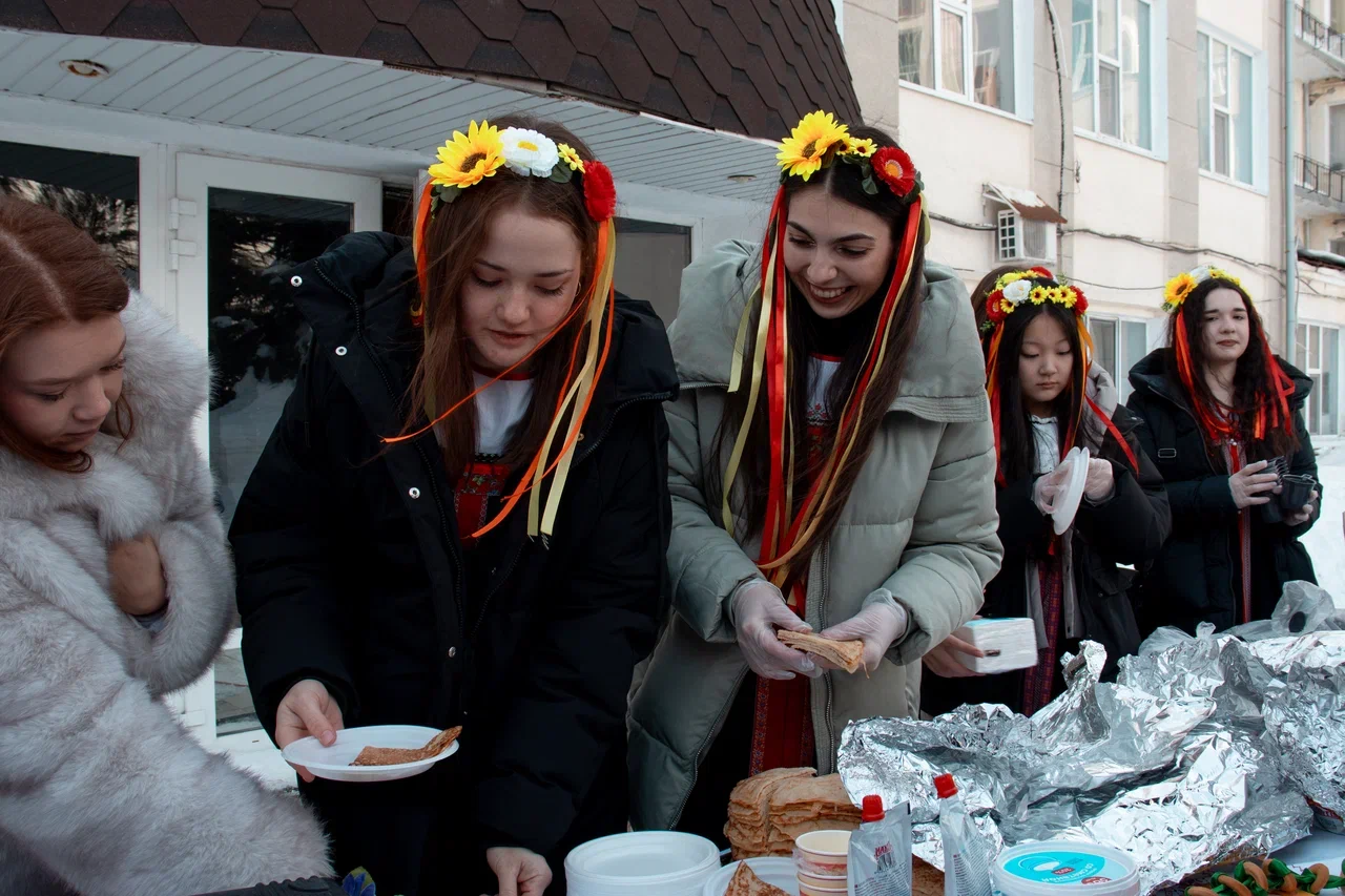 К масленичным гуляниям активно присоединились и иностранные студенты, которые прониклись атмосферой традиционного русского праздника.