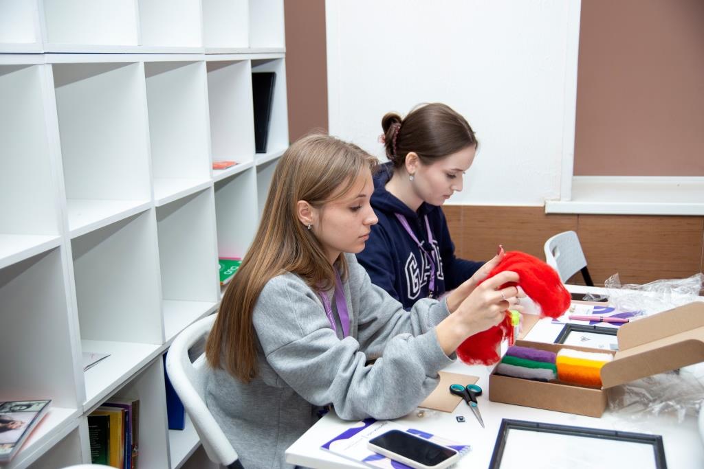 Во второй части мероприятия руководитель центра социальной интеграции Светлана Гарусина провела мастер‑класс по фелт‑терапии – нетрадиционной технике рисования с использованием войлока и волокон шерсти. Студенты получили возможность познакомиться с основами данной техники и ее терапевтическим эффектом, освоить базовые приемы работы с материалами, создать собственные художественные композиции и на практике испытать, как творческий процесс помогает снять напряжение и гармонизировать эмоциональное состояние.