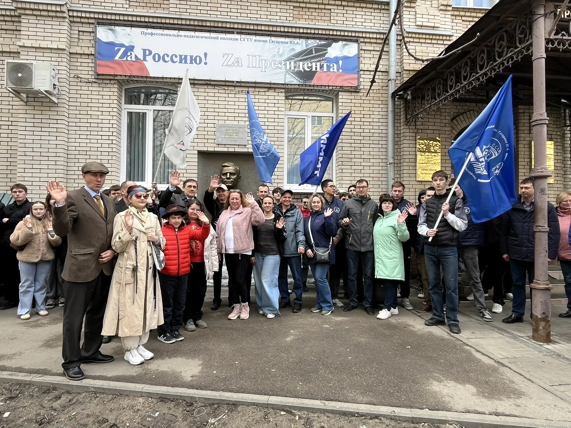 Колонна автомобилей стартовала от Политеха и проследовала по памятному маршруту к Профессионально-педагогическому колледжу, где начинался путь Юрия Гагарина к звездам.