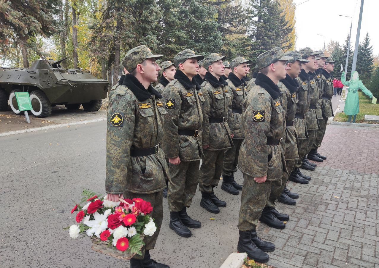 Память погибших военнослужащих почтили минутой молчания, после чего к мемориалу возложили цветы.