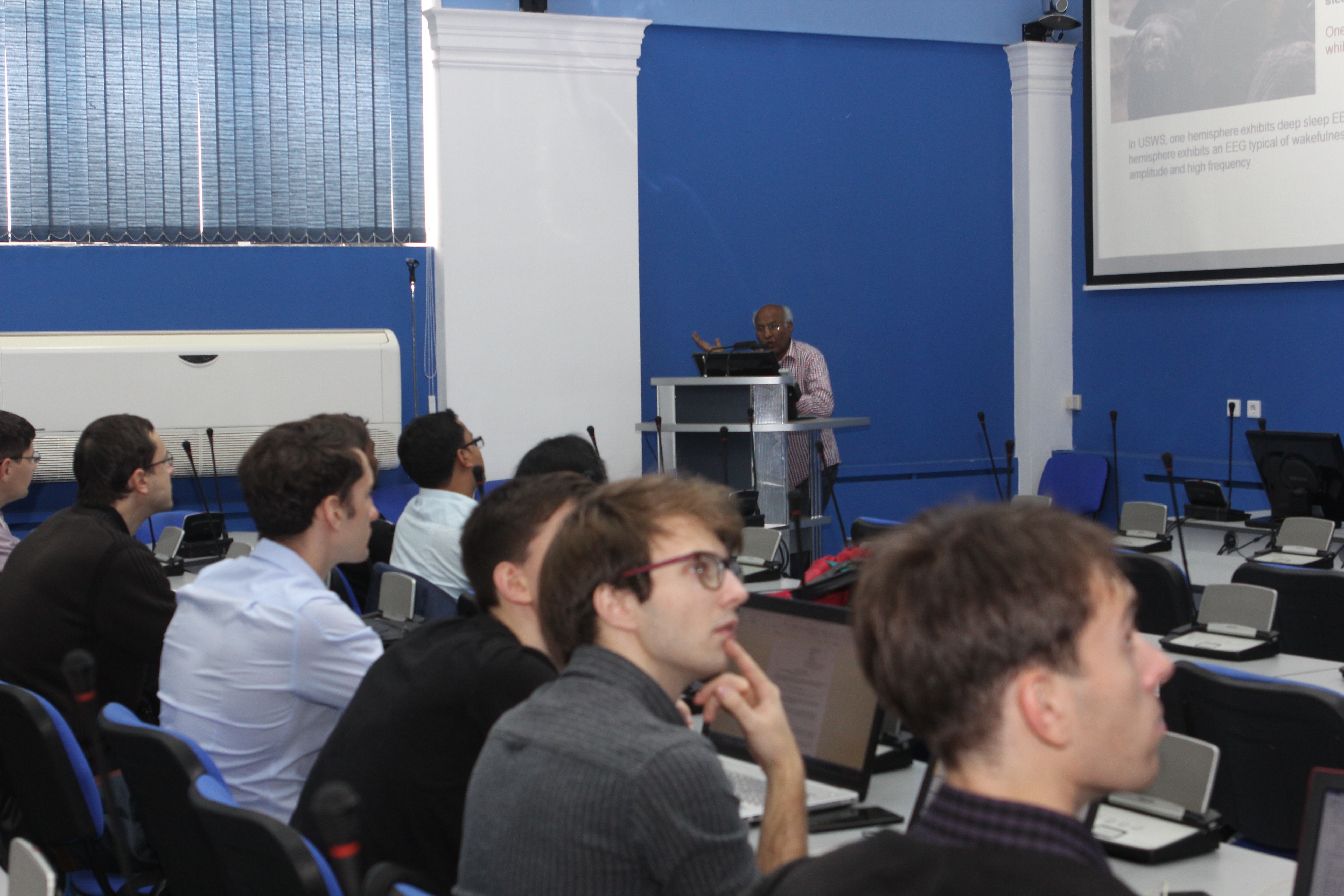 2 ноября 2015 года в СГТУ им. Гагарина Ю.А. прошло торжественное открытие Международного российско-индийского семинара «Нелинейные динамические системы и синхронизация в нейронауке». Открыли международный семинар первый проректор Саратовского государственного технического университета профессор А.А. Сытник и заместитель директора по науке Саратовского филиала института радиотехники и электроники РАН профессор Е.П. Селезнев. На открытии с приветственными словами выступили директор ИнЭТМ профессор М.Б. Бровкова, декан ФЭС, доцент А.В. Иванов, профессор Сямал Дана из Института химической биологии (Калькутта, Индия). Профессор А.Е. Храмов рассказал о совместном российско-индийском проекте и сотрудничестве с Индийскими коллегами, в рамках которого проводится данное международное научное мероприятие. После открытия состоялась лекция проф. А.Е. Храмова, посвященная разработке интерфейсов мозг-компьютера для применения в медицинских и нейрофизиологичексих исследованиях.