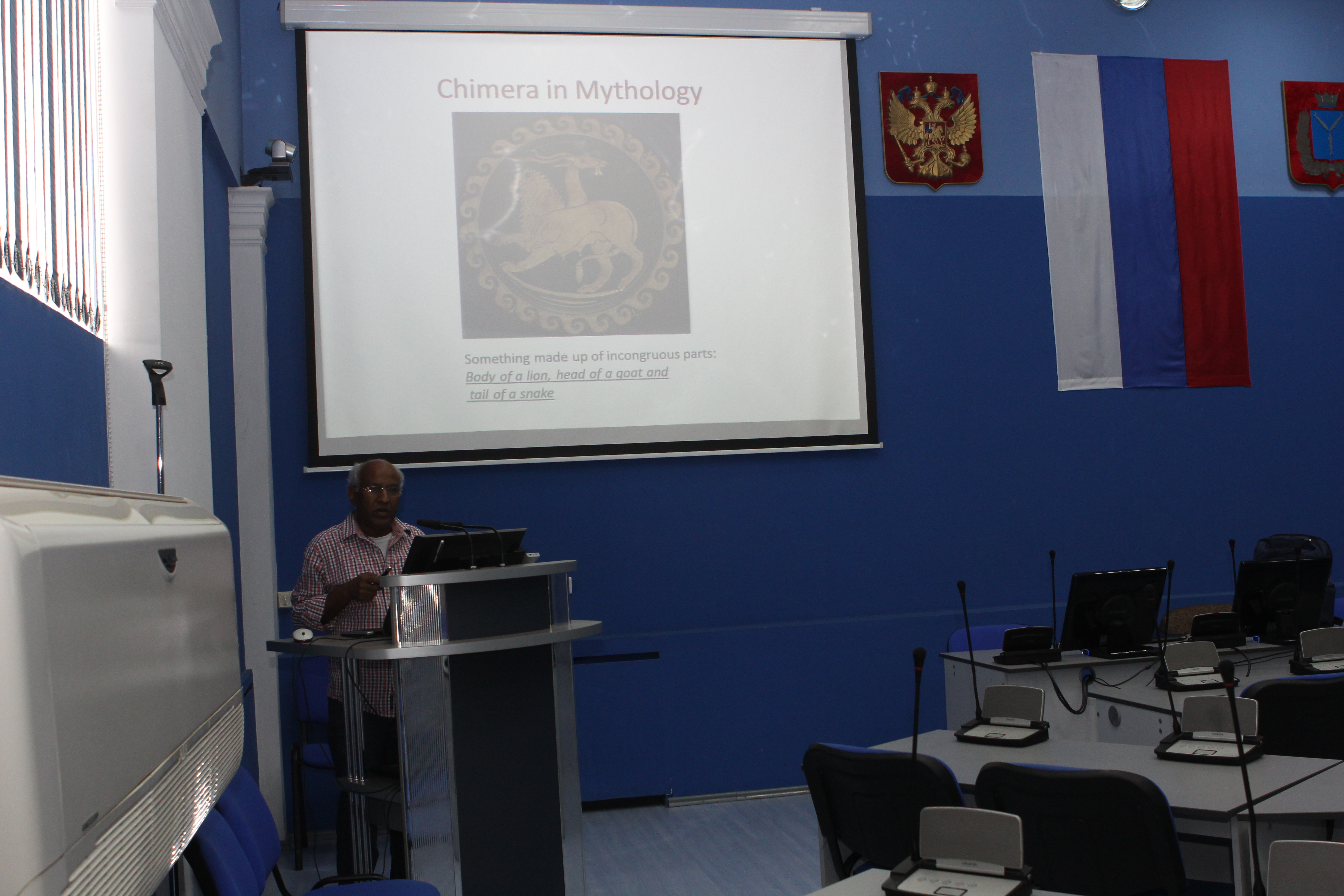 Во второй половине дня публичную лекцию на английском языке для студентов, аспирантов, научных сотрудников и преподавателей СГТУ имени Гагарина Ю.А. и участников семинара прочитал профессор Сямал Дана. Тема лекции «Экспериментальное и теоретическое исследование «химер» в сложных сетевых моделях» вызвала большой интерес и значительное число вопросов участников семинара и студентов.