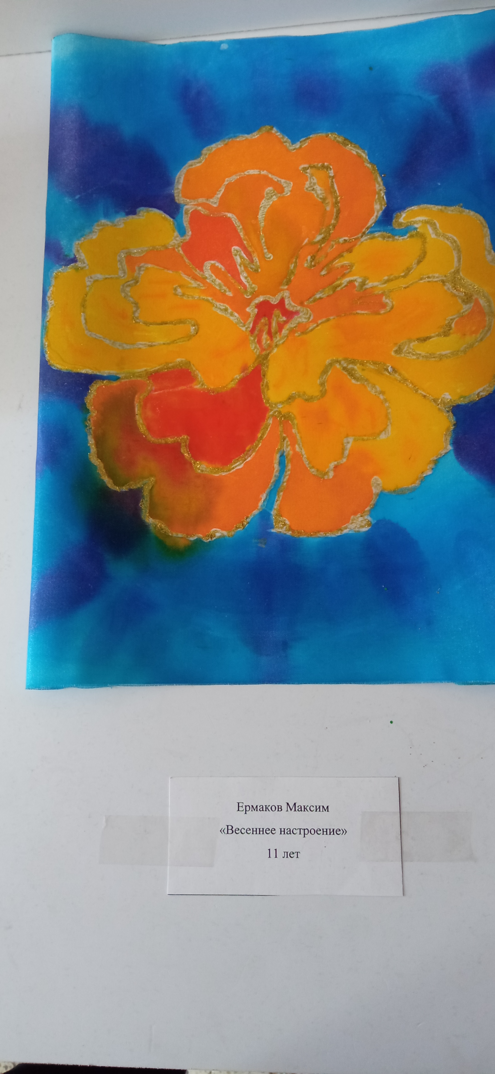 - Максим Ермаков, 11 лет – «Весеннее настроение» (композиция в технике батик);