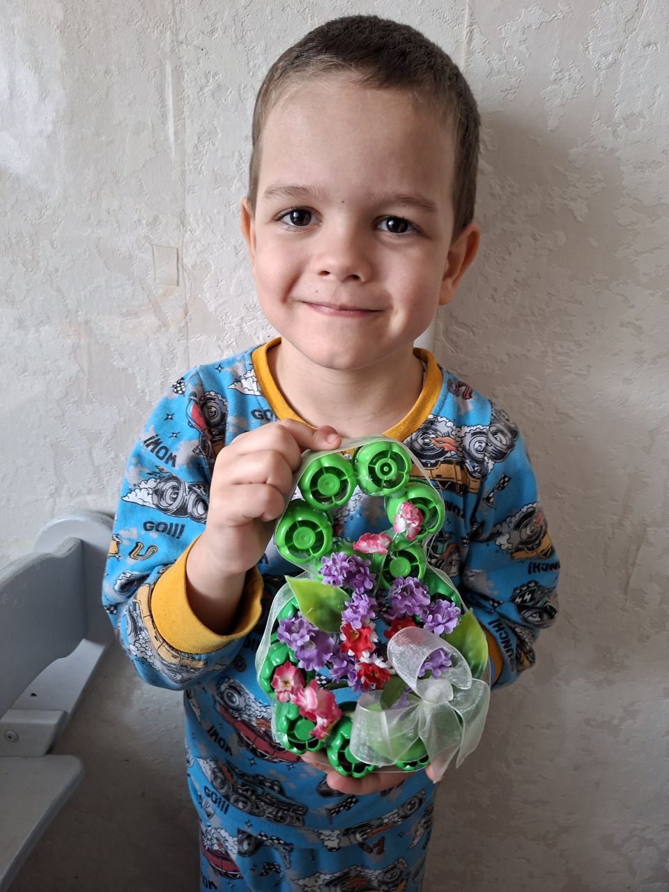 - Михаил Светочев, 7 лет – «Цветы для мамы», Алиса Колоколова, 6 лет – «Подарок маме», Егор Светочев, 6 лет – «Праздничная восьмерка» (оригинальные композиции из необычных материалов);