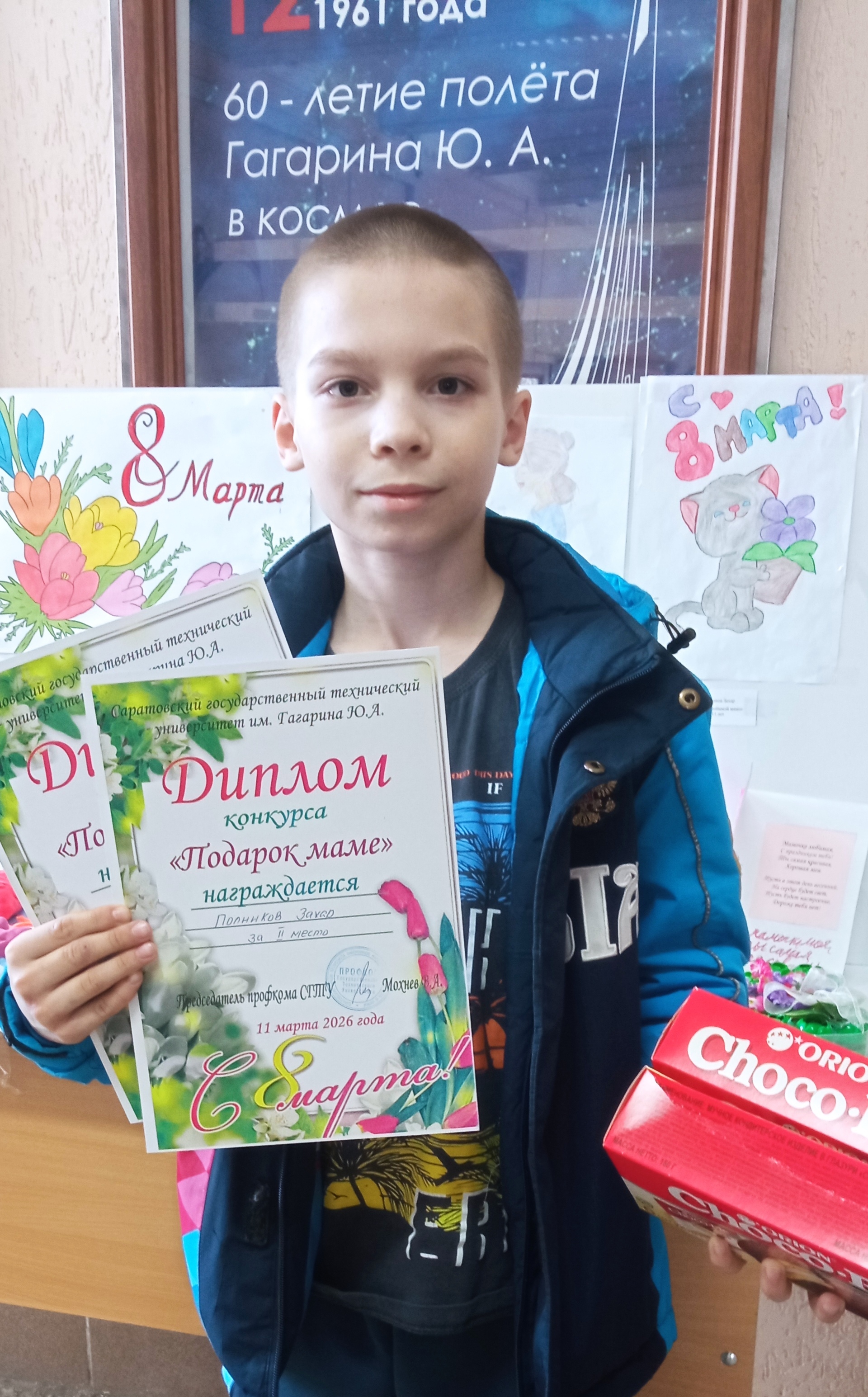 Профком сотрудников СГТУ имени Гагарина Ю.А. подвел итоги конкурса детского творчества «Подарок маме», посвященного Международному женскому дню. Конкурс проходил с 18 февраля по 11 марта. Награждение участников состоялось в 1 корпусе.