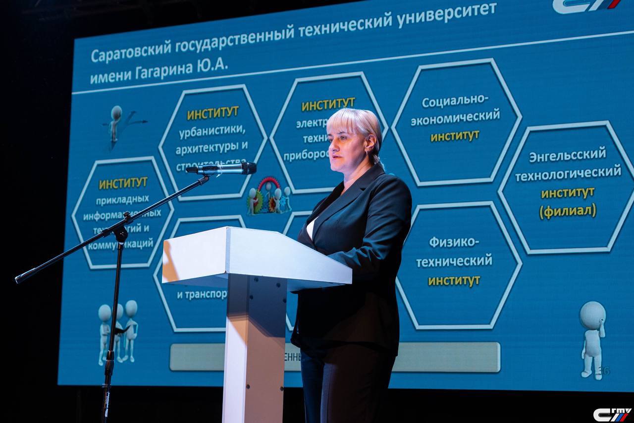 «Дорогие друзья! Сейчас вы вступаете в ту пору, когда вам предстоит самостоятельно сделать первый очень серьёзный, взрослый выбор, который во многом предопределит всю вашу жизнь. Саратовский Политех – вуз с почти столетней историей, один из флагманов российского инженерного образования, опорный университет крупнейших госкорпораций – «Роскосмоса» и «Росатома». Наши выпускники успешно трудоустраиваются в ведущие организации региона и страны, они всегда востребованы. Уверена, что вы никогда не пожалеете, если решите связать судьбу с Политехом!»