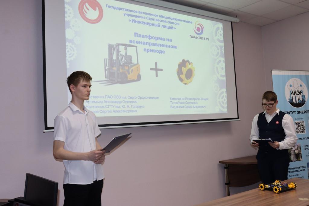 Старшеклассники подготовили проекты инженерной и технической направленности, а их работы оценивала экспертная комиссия из числа преподавательского состава Института энергетики СГТУ, детского технопарка «Кванториум» и ПАО «СЭЗ им. Серго Орджоникидзе»: