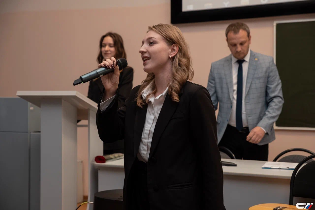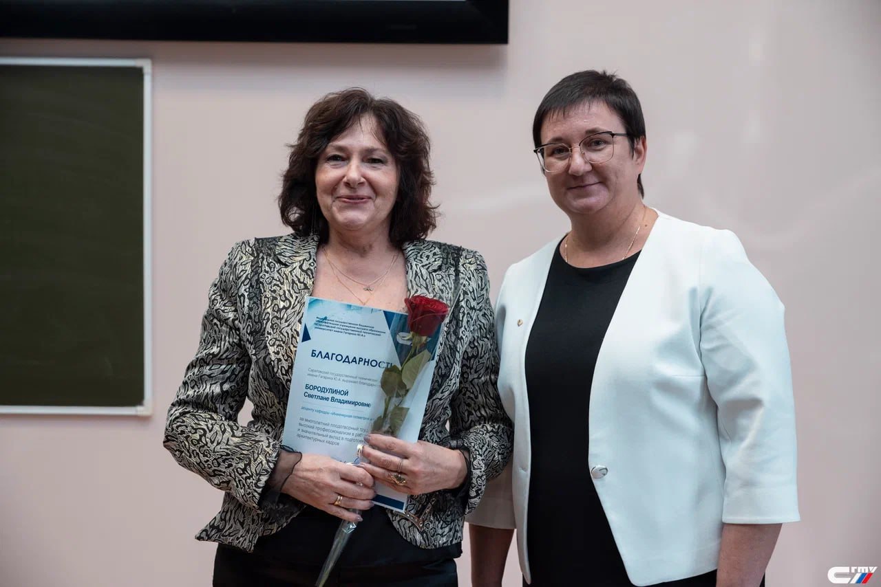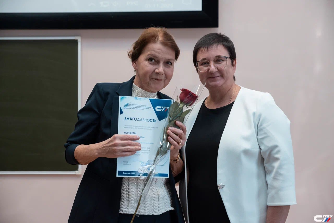 Проректор по учебной работе Ольга Мизякина передала собравшимся поздравления от ректора СГТУ, профессора Сергея Наумова: