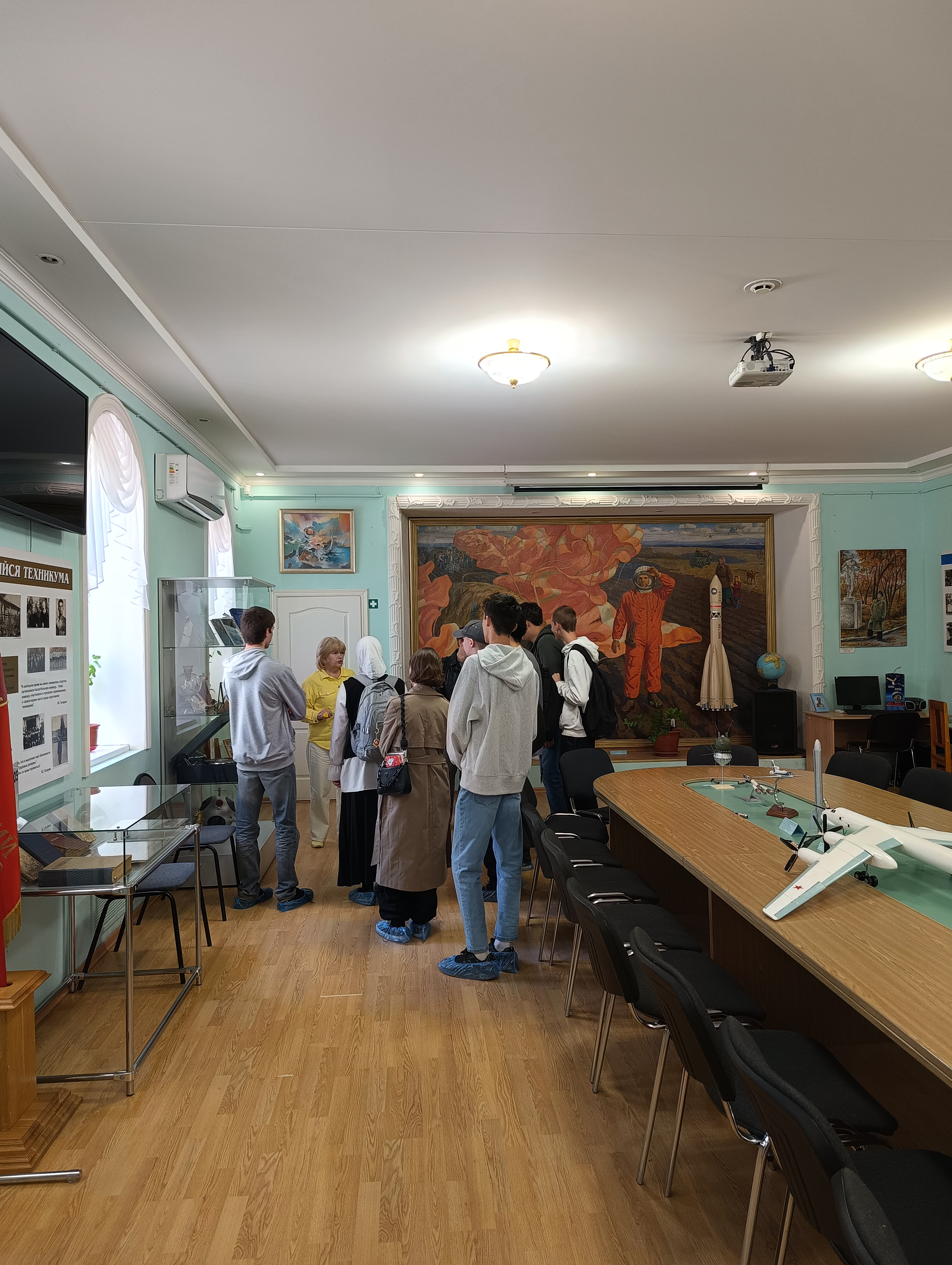 Под руководством куратора группы, доцента кафедры МиМ Татьяны Ярошенко студенты посетили Народный музей Ю.А. Гагарина. С большим интересом студенты прослушали экскурсовода-методиста, которая увлеченно рассказала об этапах жизни Юрия Гагарина. Как из талантливого и упорного деревенского мальчишки он стал летчиком – асом, а затем первым космонавтом мира. Он был разносторонним человеком и следовал убеждению: «Учись так, как будто тебе суждено жить вечно, живи так, как будто тебе суждено умереть завтра». Увлеченный учебой, разносторонний в своих увлечениях, Гагарин всегда стремился быть максимально успешным – отличником в школе, училище и техникуме, капитаном много раз побеждавшей баскетбольной команды, отличником подготовки в Саратовском аэроклубе ДОСААФ СССР. Он вступил в отряд космонавтов, пройдя очень серьезный отбор: из 3600 претендентов прошло чуть больше ста человек. А потом из них было выбрано два кандидата Юрий Гагарин и его дублер, космонавт номер два – Герман Титов. Всегда первый и всегда лучший. Его жизнь – это жизнь легенды.