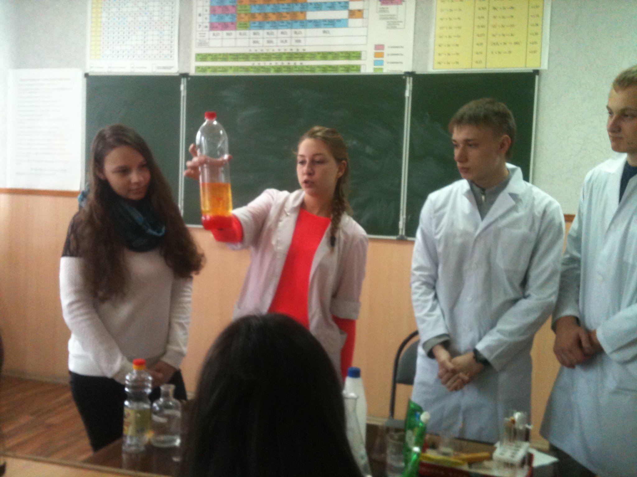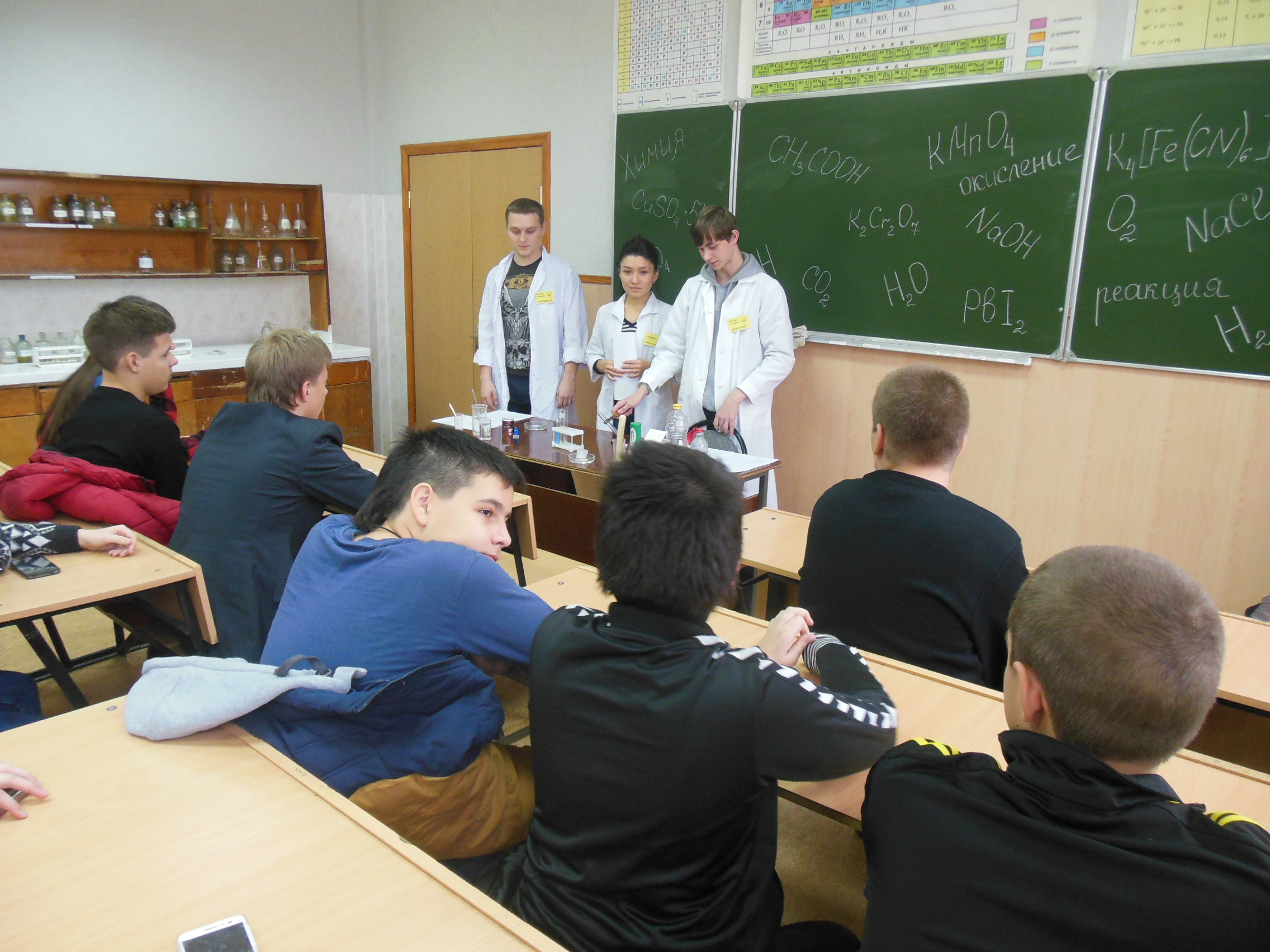 Для учащихся 10 классов студенты 1 и 2 курса направления «Химическая технология» под руководством доцентов Никитюк Т.В. и Колоколовой Е.В. провели занимательные химические опыты с элементами интерактивного общения, направленные на более глубокое познание химических процессов и явлений с учетом уже имеющихся у школьников знаний школьной программы.