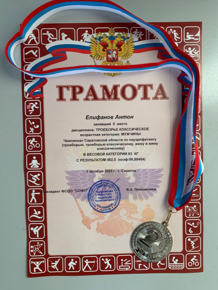 В ФОК «Юбилейный» прошел чемпионат Саратовской области по пауэрлифтингу. Студент первого курса направления «Техносферная безопасность» Института урбанистики, архитектуры и строительства СГТУ имени Гагарина Ю.А. Антон Епифанов занял второе место.
