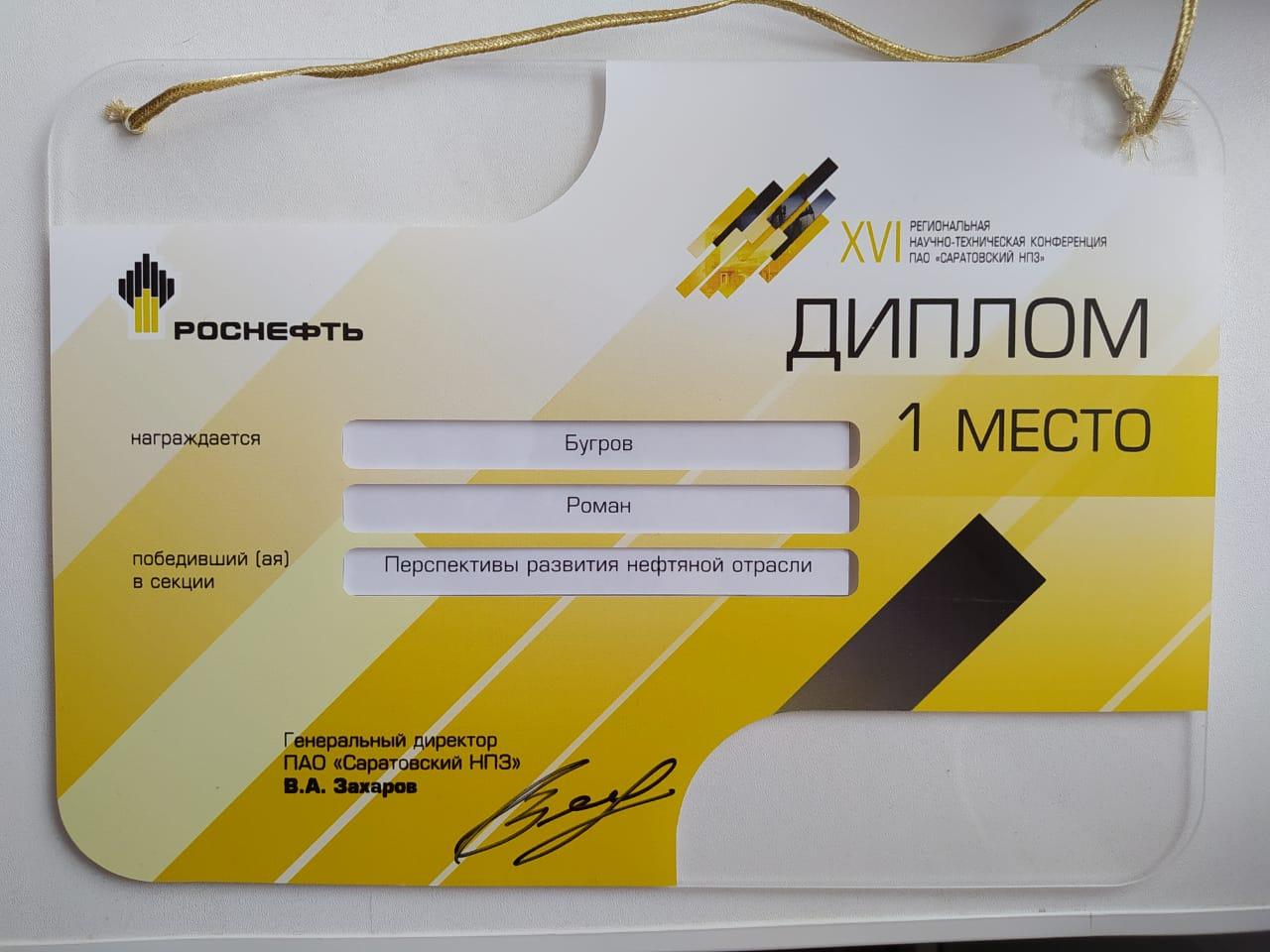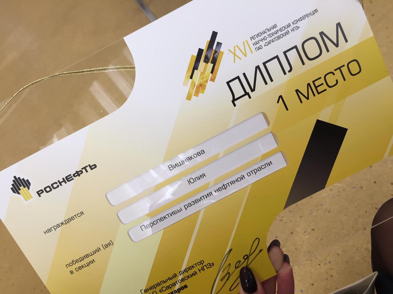 Студенты ФТИ стали призёрами XVI региональной научно-технической конференции молодых специалистов ПАО «Саратовский НПЗ»