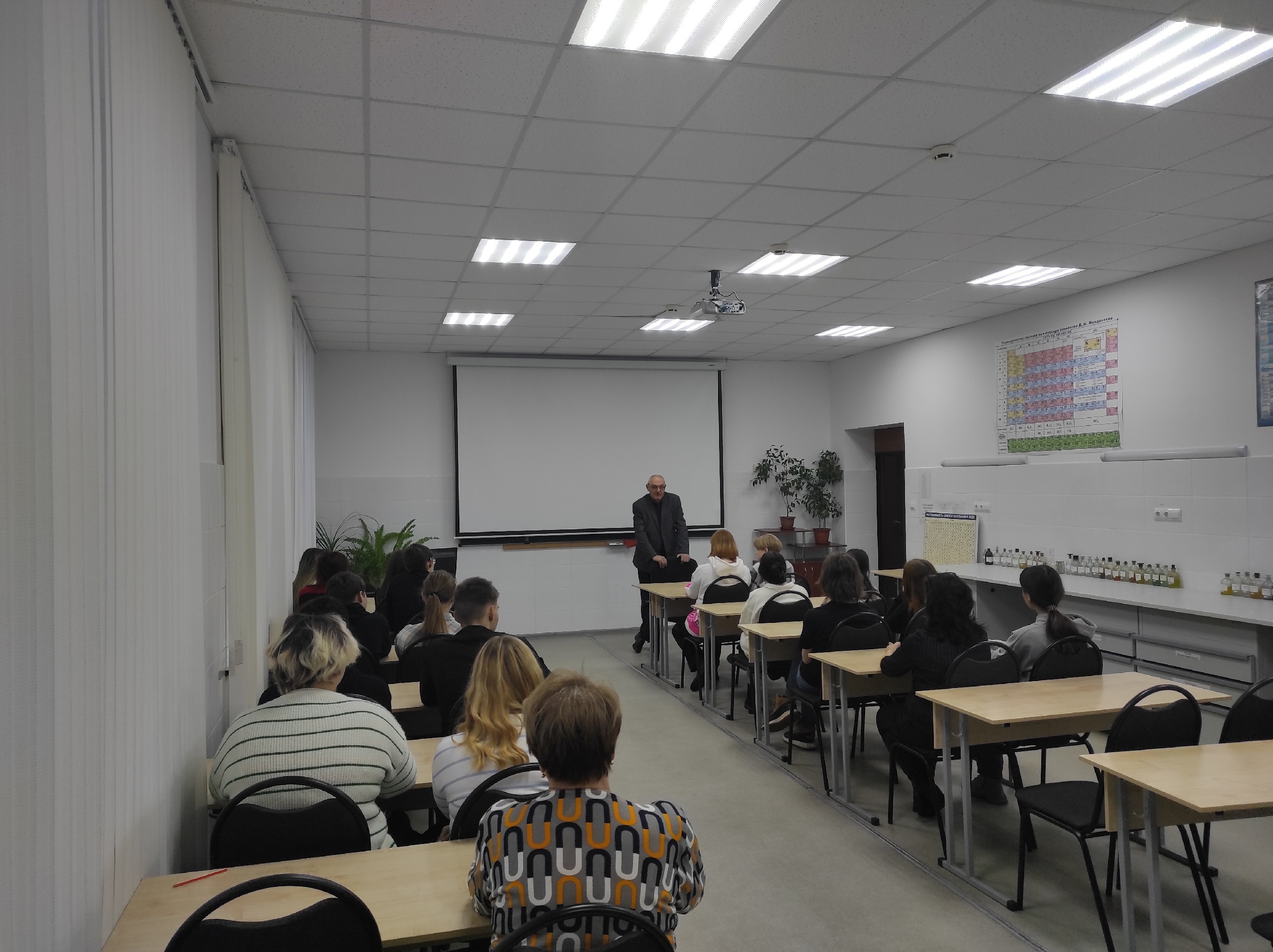 На кафедре «Химия и химическая технология материалов» для учащихся 9-11 классов школ № 97 и № 54 Саратова заведующий кафедрой, профессор Александр Гороховский провел научно –популярную лекцию. Ученый рассказал школьникам о ключевой роли технического образования в современном мире, об актуальных научных разработках кафедры и широкой востребованности специалистов в области химической технологии.