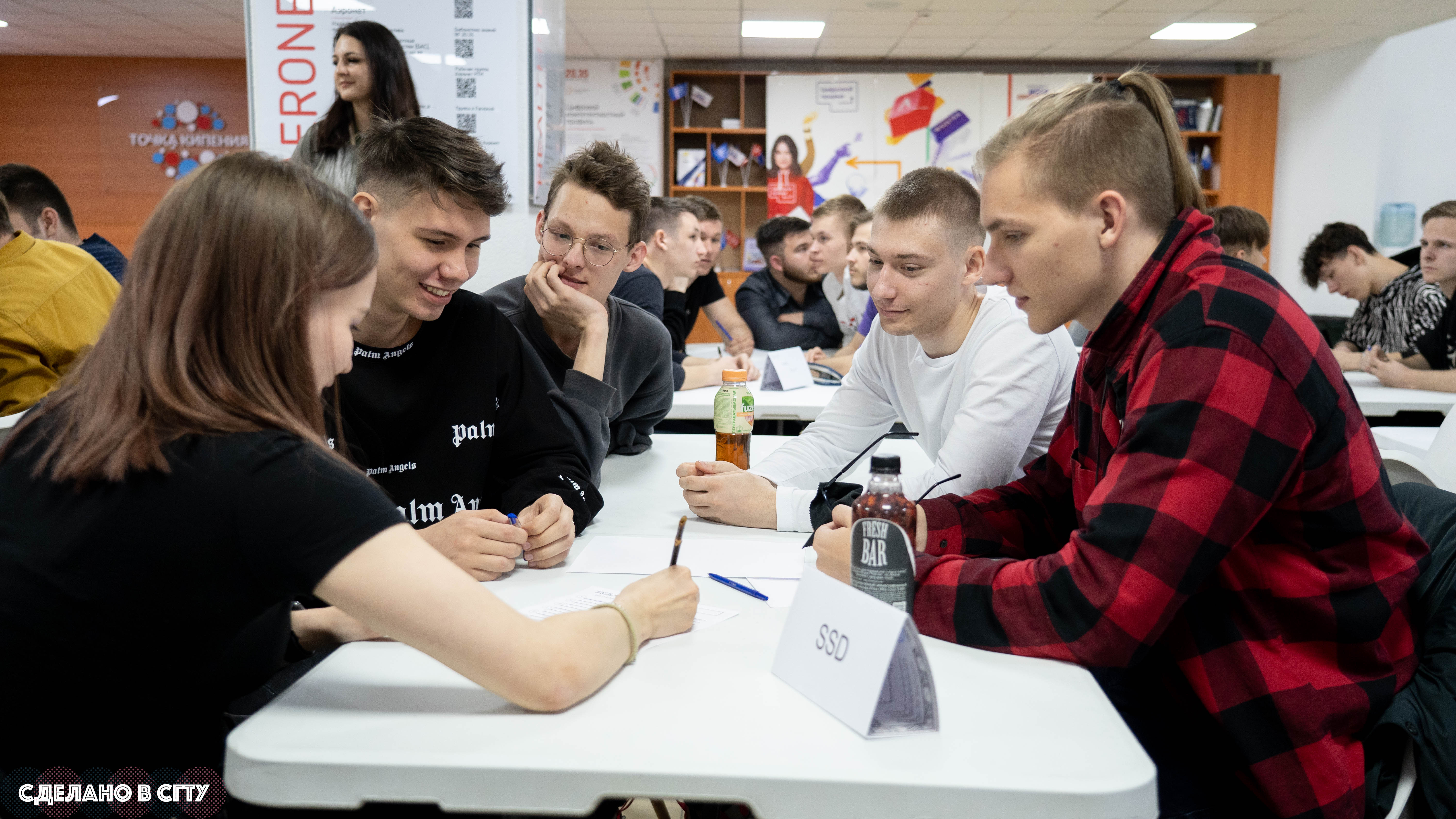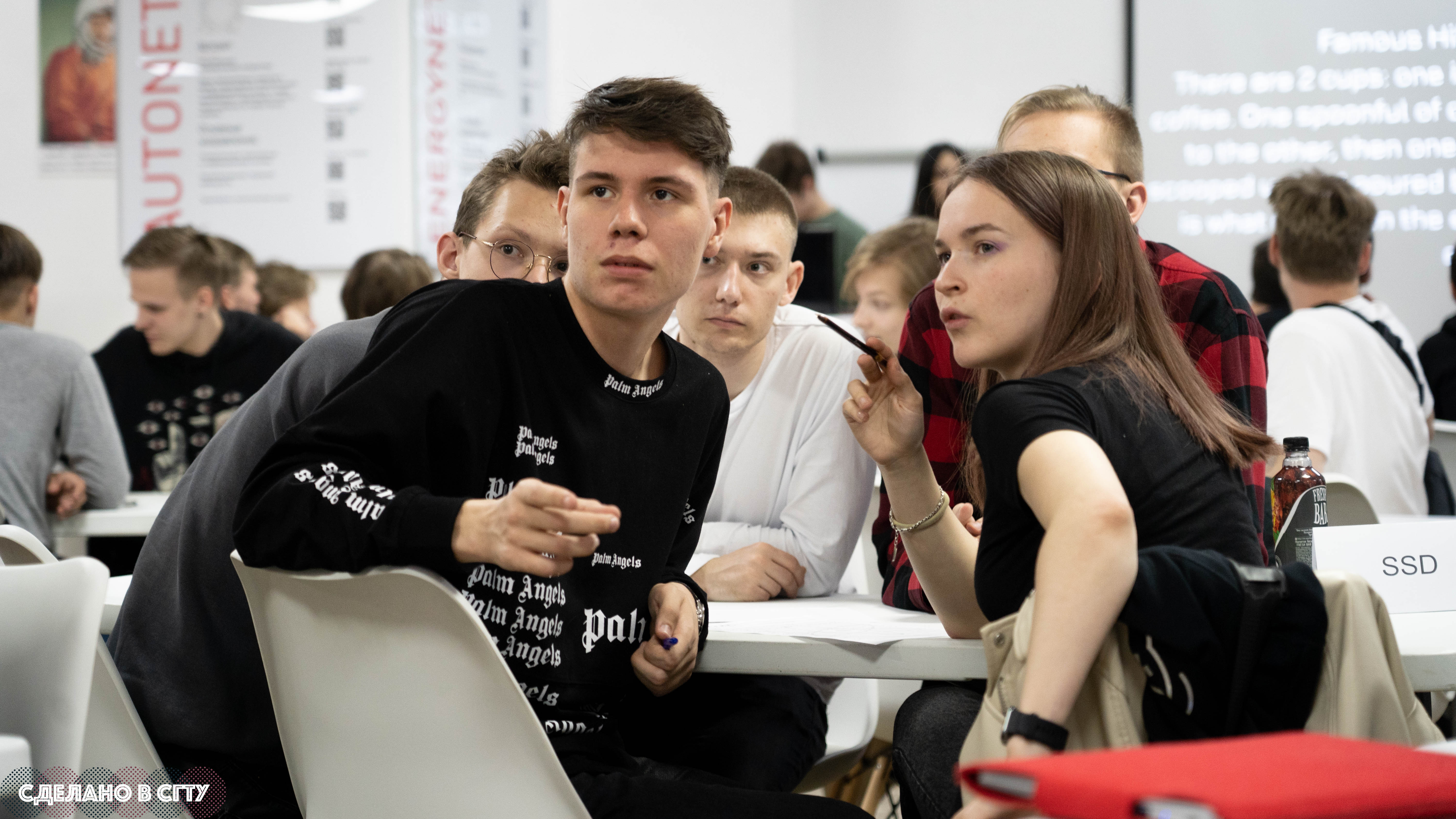 На площадке «Точки кипения» СГТУ имени Гагарина Ю.А. кафедра «Иностранные языки и профессиональная коммуникация» Института социального и производственного менеджмента и кафедра «Физика» Физико-технического института провели физико-математическую олимпиаду на английском языке.