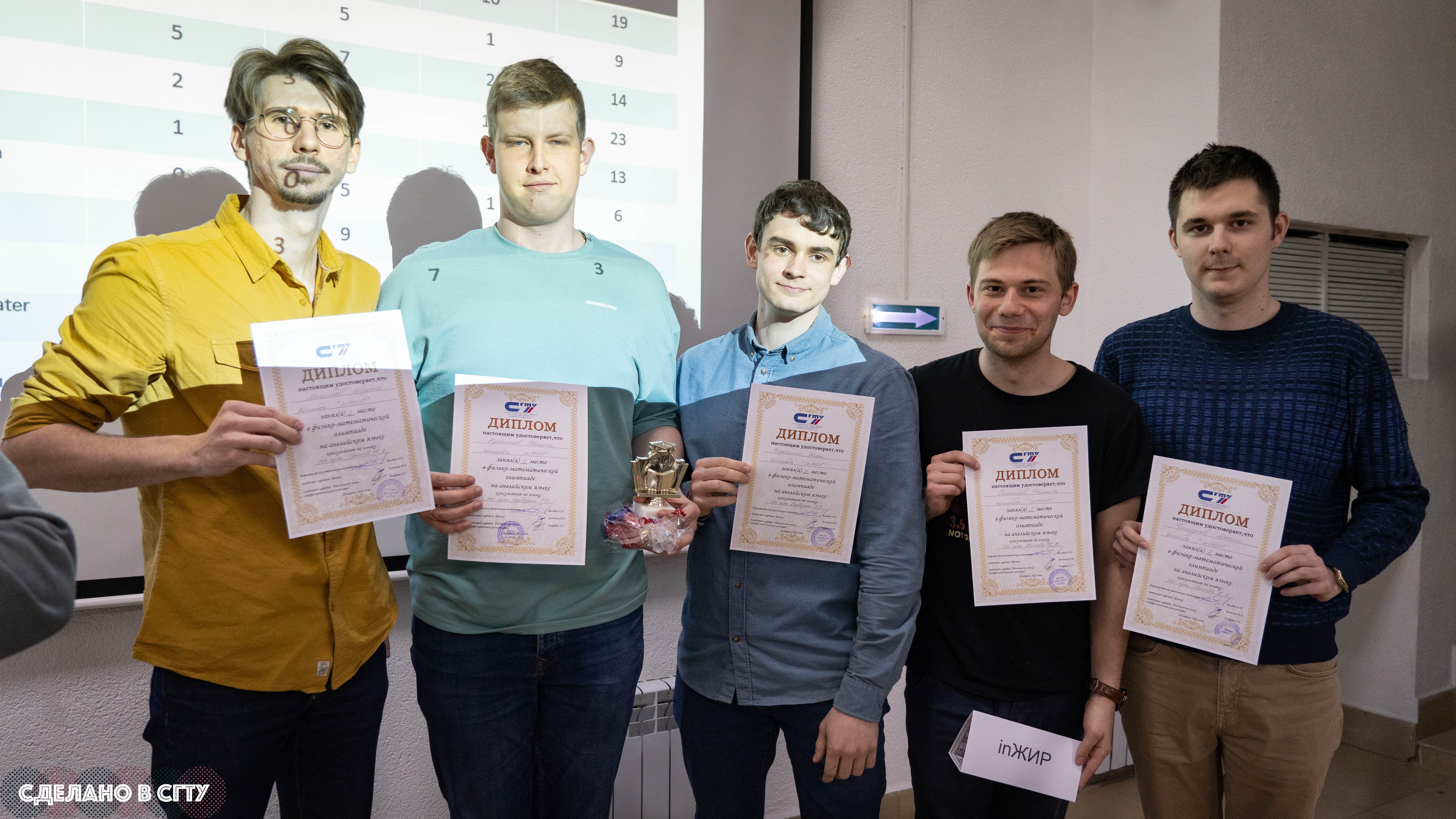 • 1 место – команда «inЖИР». Состав команды: Артем Гришутов, Ибрагим Магомедов, Никита Прописнов, Никита Симанов, Илья Черкашин;