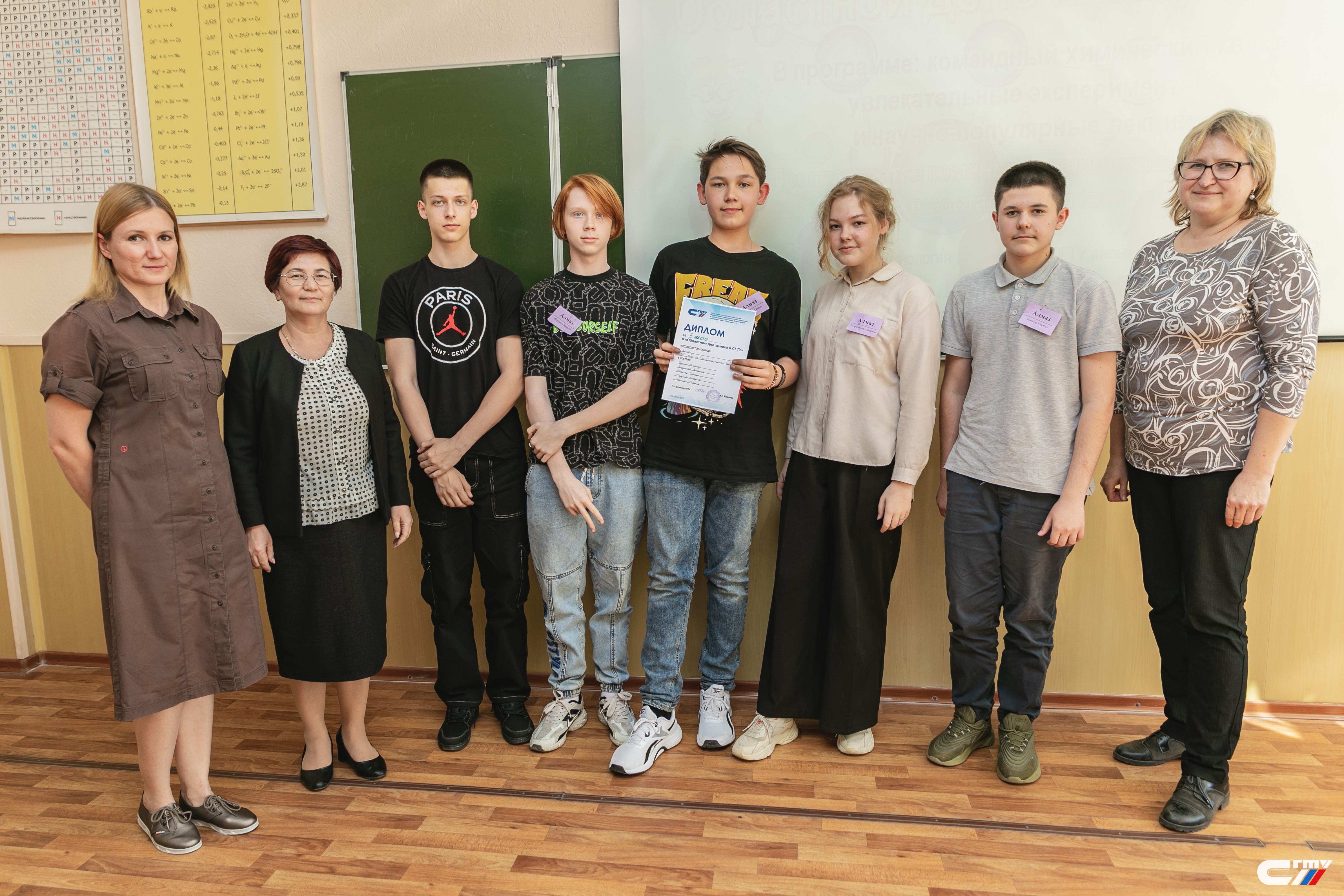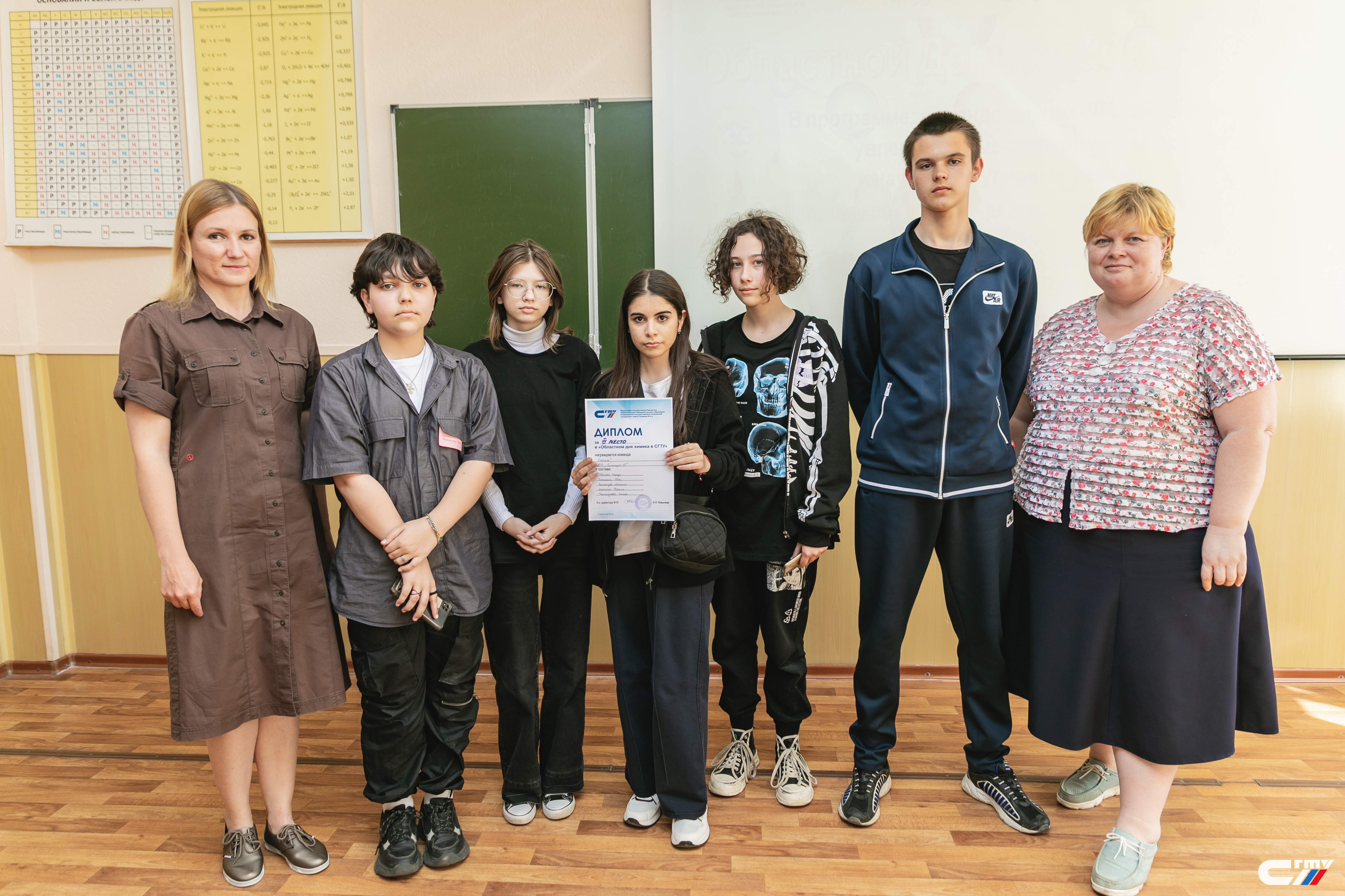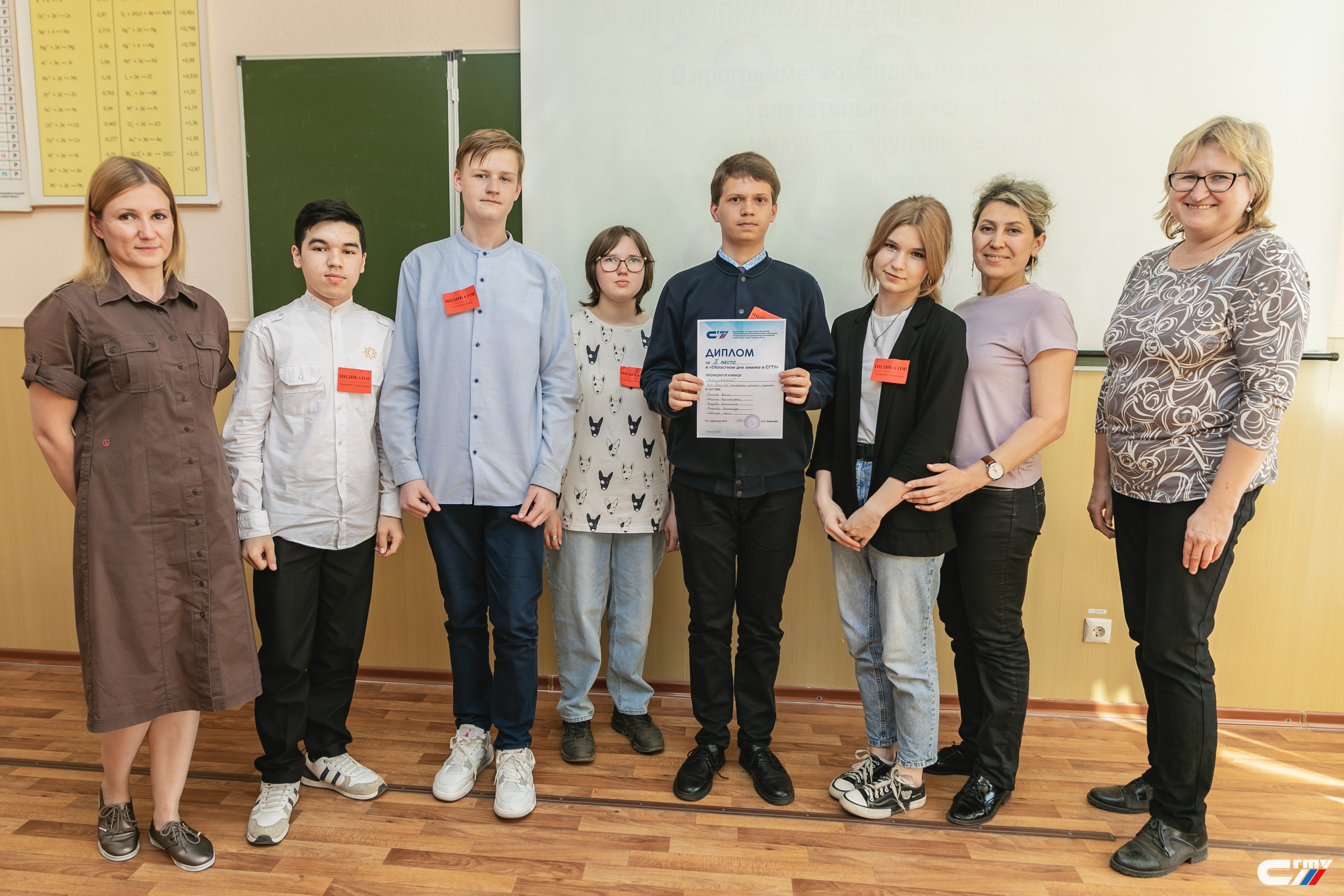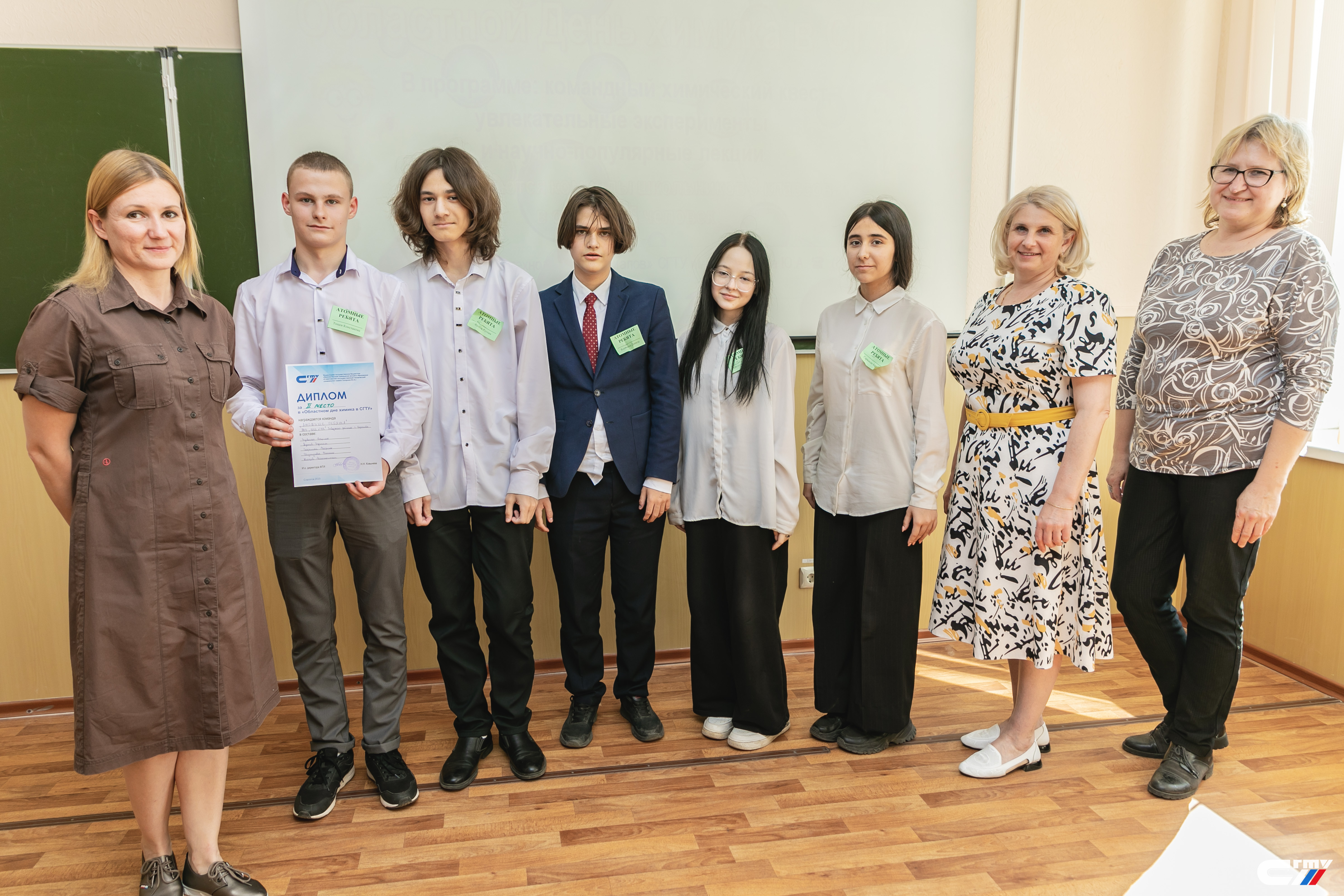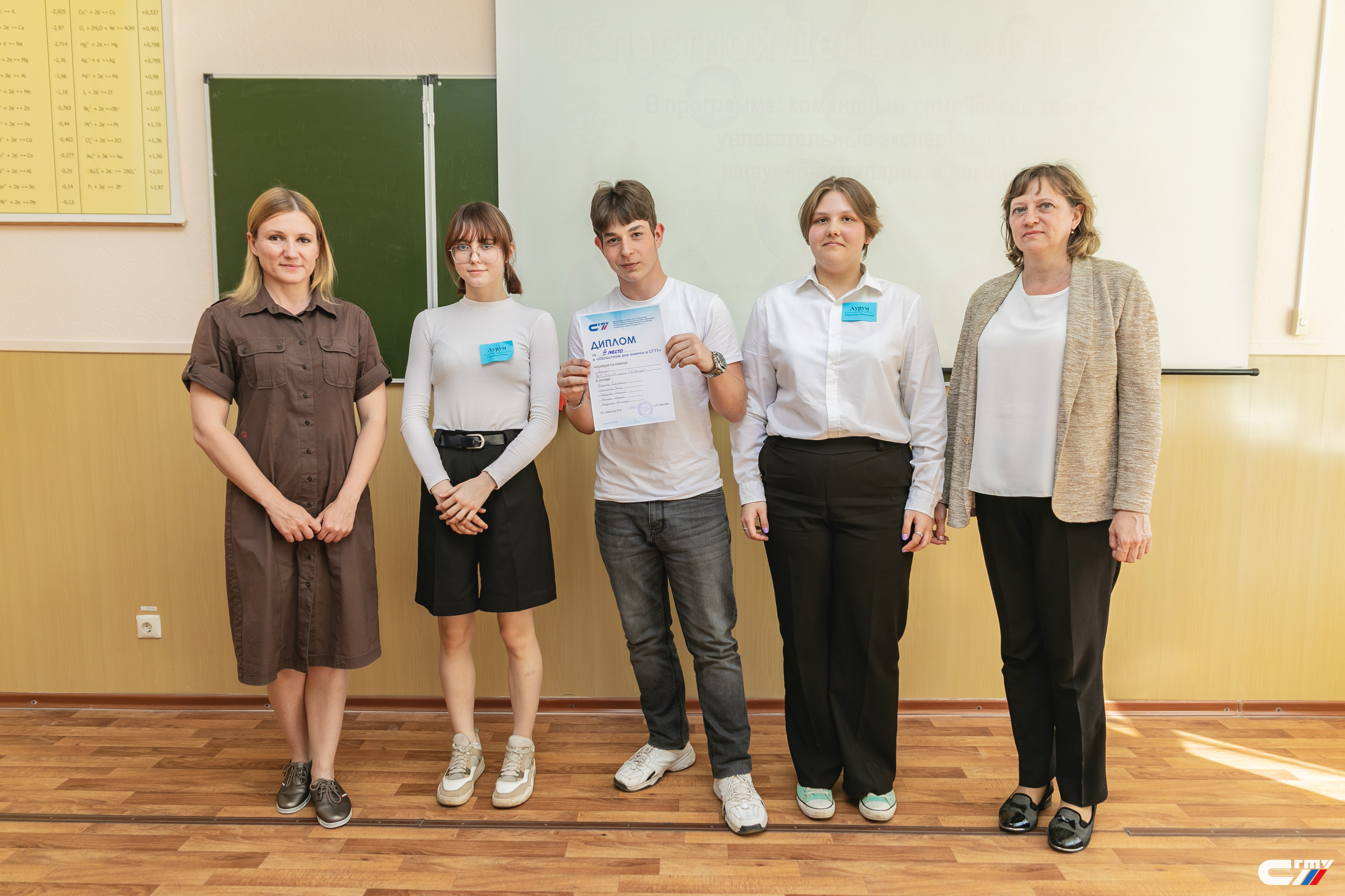 В завершении праздничного мероприятия заместитель директора Физико-технического института Наталья Ковынева поздравила гостей политеха с наступающим профессиональным праздником и вручила дипломы победителям и призерам химического квеста. Лучшими стали команды «Корпускулы» школы №94 Ленинского района Саратова и «Титаны» школы с. Куриловка Новоузенского района Саратовской области.