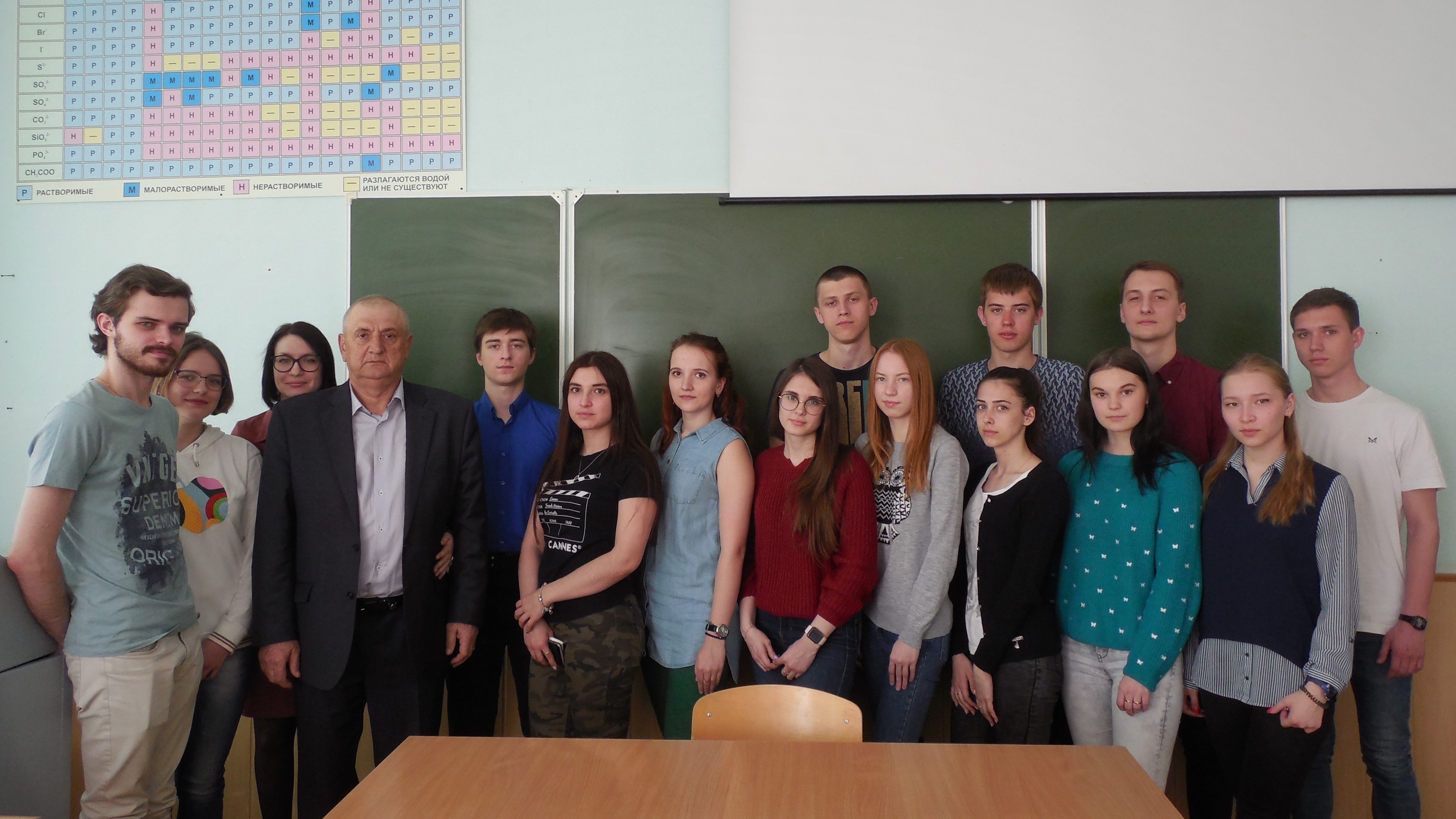 23 апреля 2019 года на кафедре ХИМ состоялась встреча подполковника запаса, кандидата технических наук, старшего научного сотрудника, участника работ по ликвидации последствий аварии на Чернобыльской АЭС Николая Ефимова с бакалаврами 2 курса и магистрантами 1 курса, обучающимися по направлению «Химическая технология».