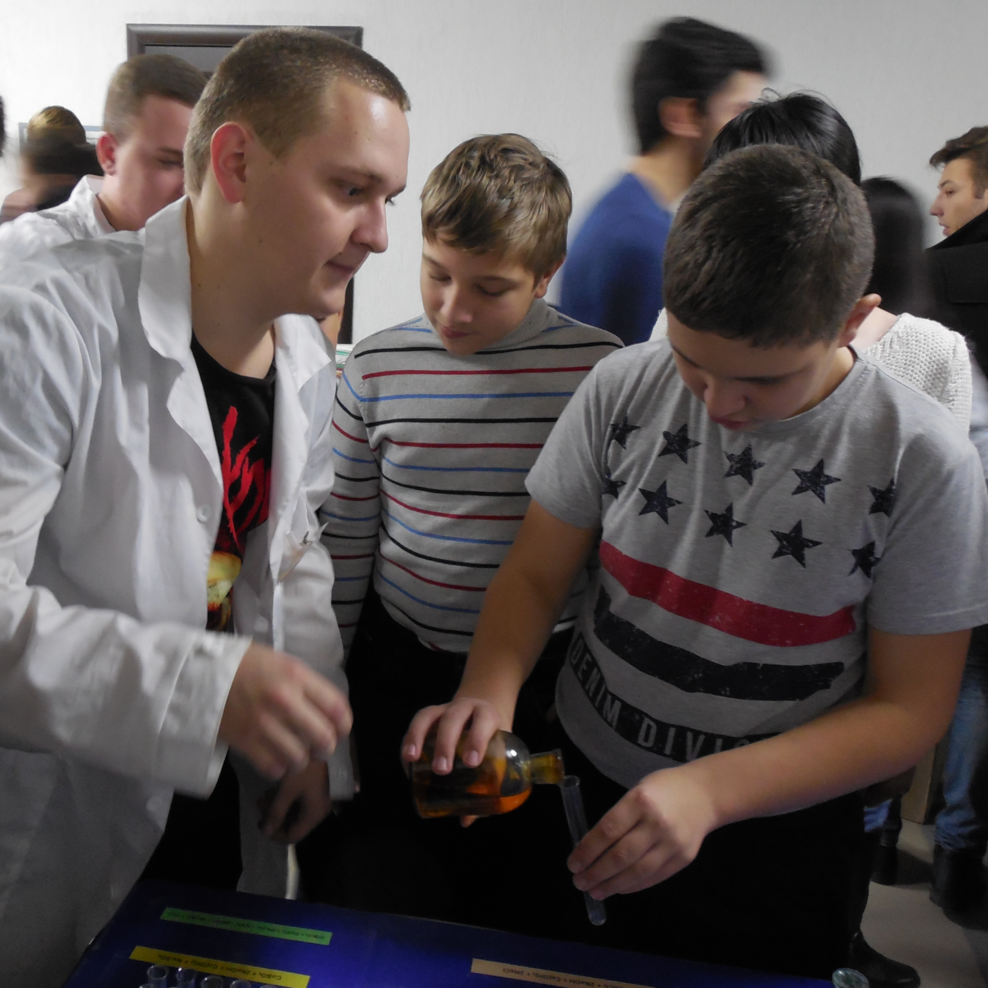 В рамках фестиваля студенты группы б2-ЭРСП41 под руководством куратора, доцента кафедры «Химия и химическая технология материалов» Натальи Ковыневой продемонстрировали гостям праздника интересные химические опыты: Аида Аубекирова показала ребятам получение «искусственной крови», Дмитрий Полтавский – «фараоновых змей» и «химическую радугу», а вместе со Станиславом Федотовым и Евгением Эйсмонтом даже самые маленькие гости фестиваля смогли самостоятельно получить в пробирках яркие растворы и красочные осадки, проведя простые, но эффектные химические реакции.