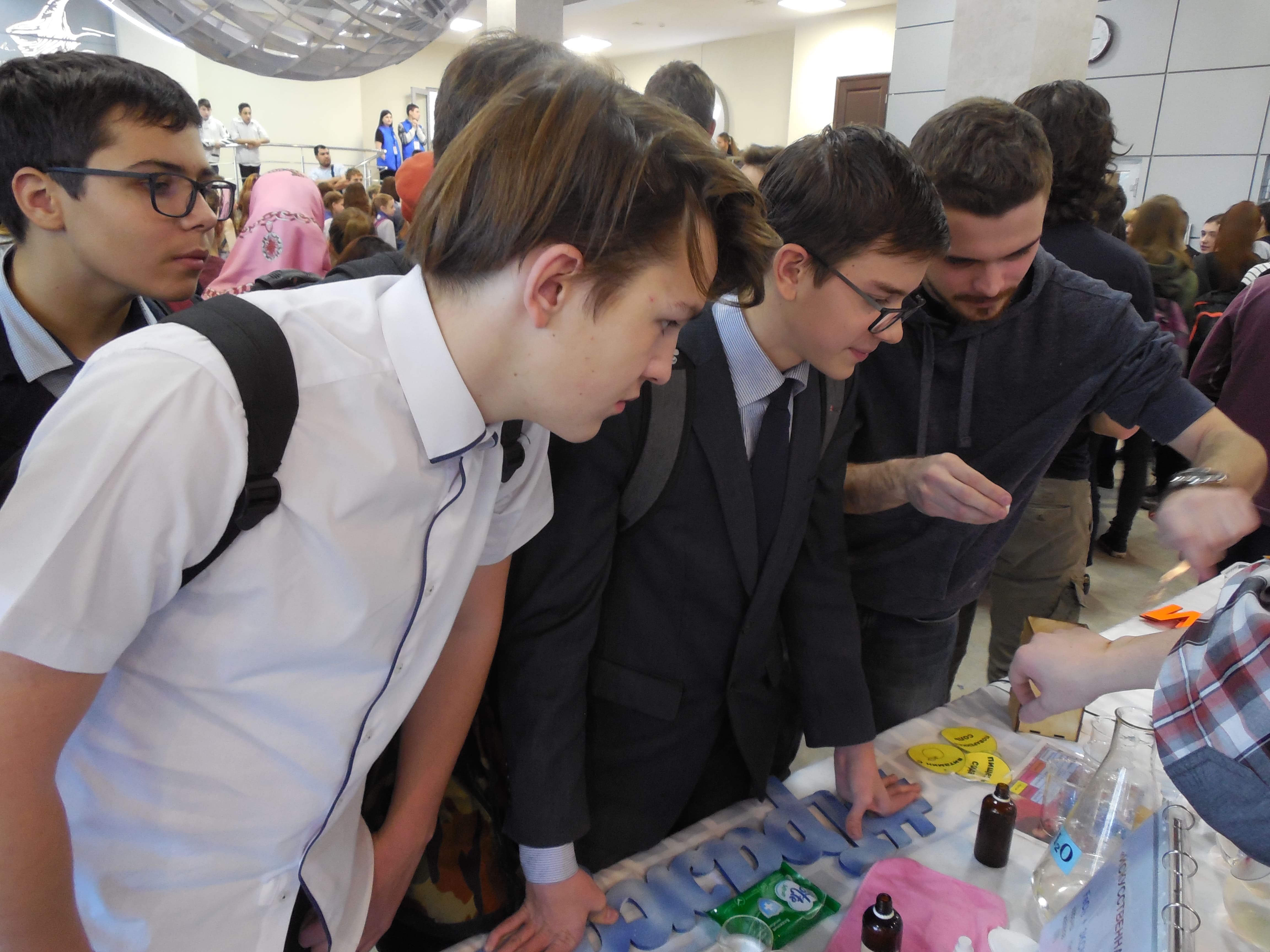 Доцент кафедры «Химия и химическая технология материалов» Наталья Ковынева представила на фестивале Физико-технический институт с площадкой «Удивительная химия», в рамках которой магистранты направления «Химическая технология» Николай Киселев и Денис Артюхов продемонстрировали ребятам результаты своей научно-исследовательской работы – термоэлектрохимический преобразователь энергии, а студент группы б2-ЭРСП41 Дмитрий Полтавский показал школьникам химическую радугу и другие зрелищные эксперименты. По итогам голосования площадка ФТИ заняла почетное второе место, уступив один голос Институту прикладных информационных технологий и коммуникаций. Всем ведущим площадок школьники преподнесли яркие подарки, сделанные своими руками.