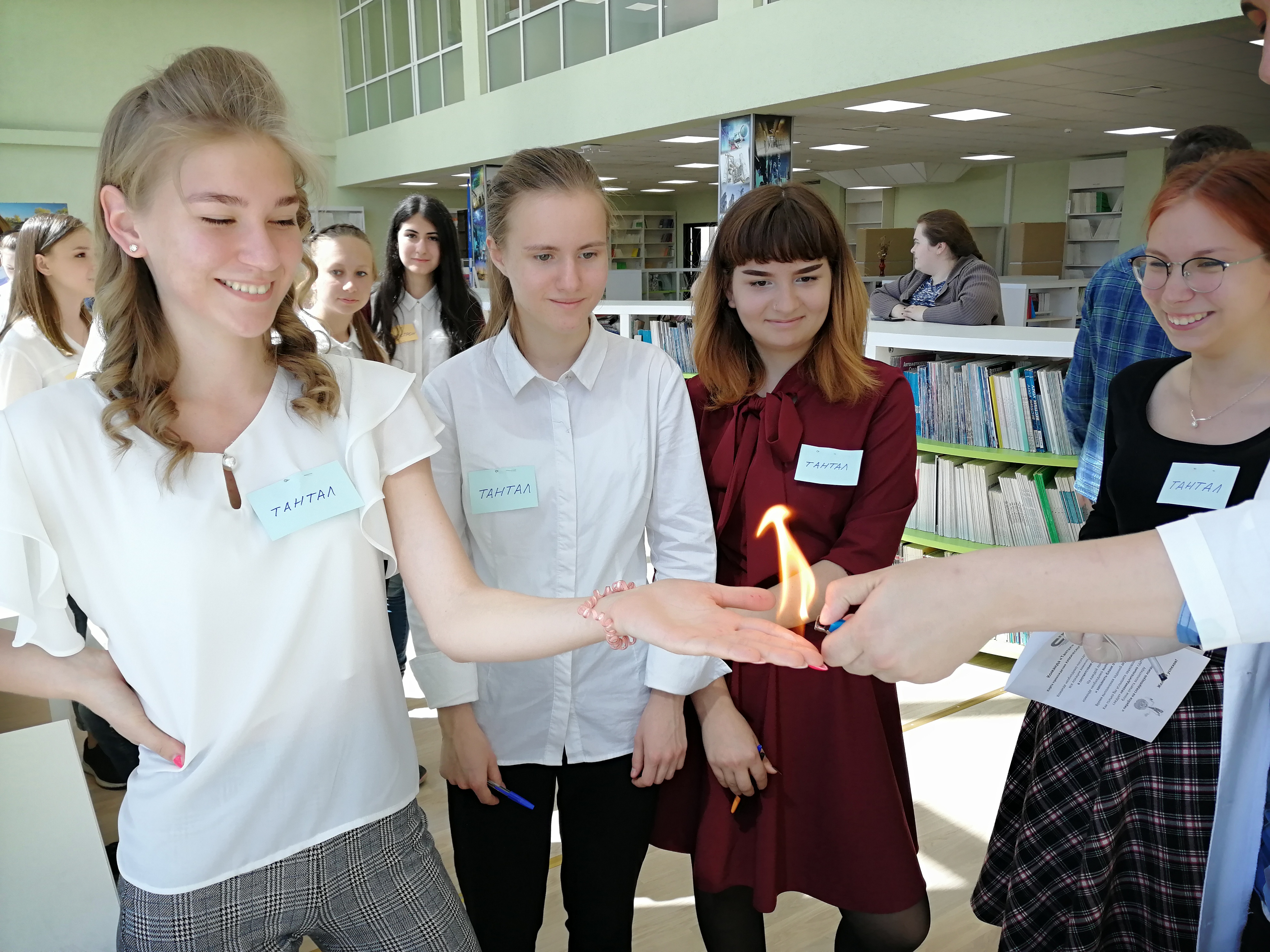 Познакомившись с Научно-технической библиотекой СГТУ имени Гагарина Ю.А. и тематической выставкой литературы о Дмитрии Менделееве, ребята приступили к прохождению химического квеста, который подготовили и провели студенты второго курса, обучающиеся по направлению «Химическая технология», вместе с преподавателями кафедры ХИМ Натальей Ковыневой и Марией Викуловой.