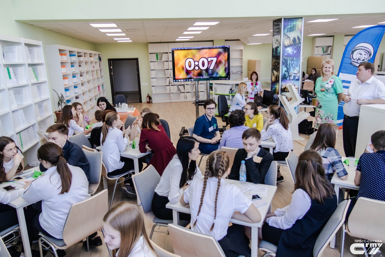 В читальном зале периодических изданий Научно-технической библиотеки СГТУ имени Гагарина Ю.А. собрались семь команд школьников из Саратова и городского округа ЗАТО Светлый Саратовской области.